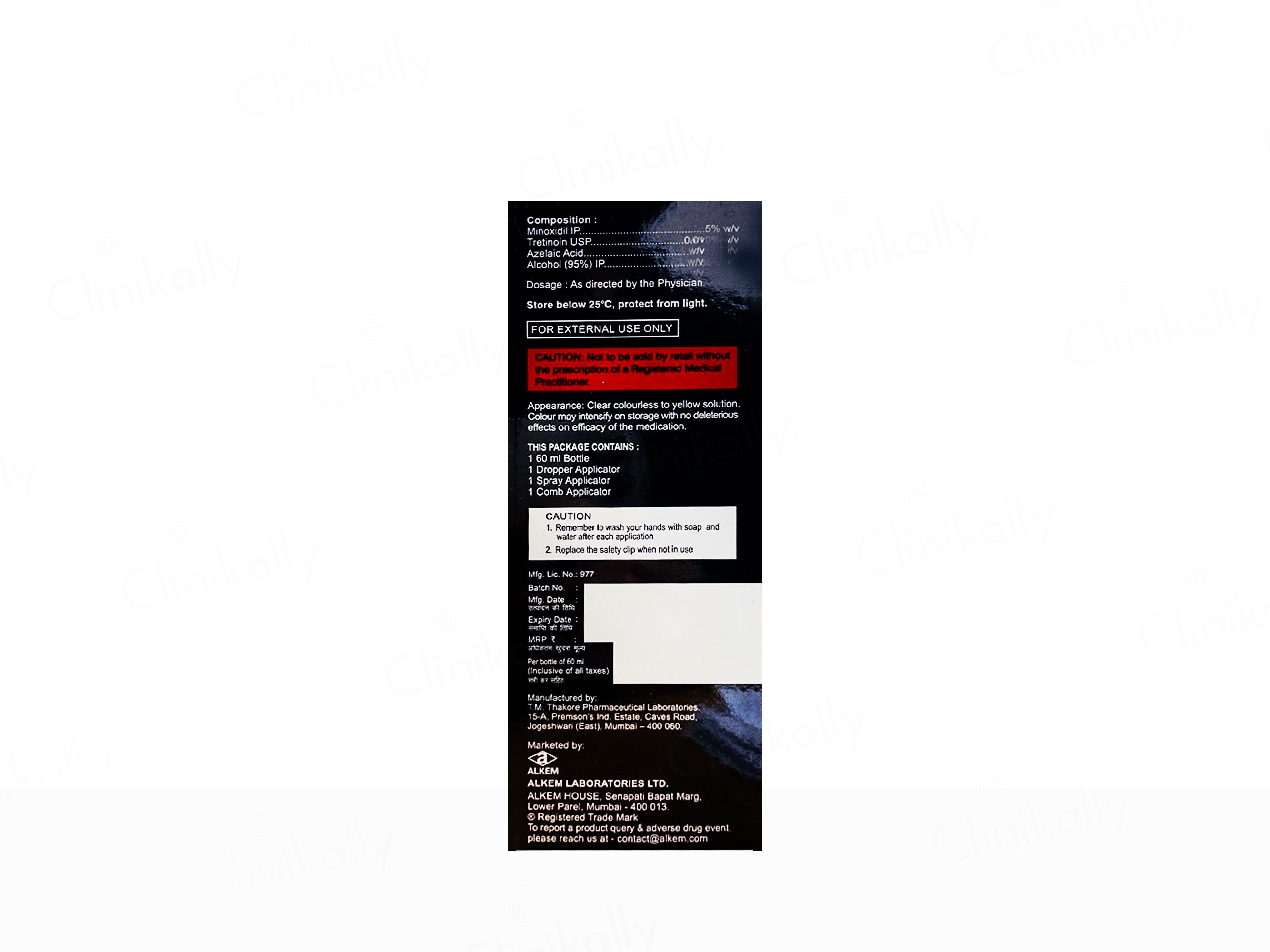 Minokem-N 5% Solution is a trusted remedy for hair loss and baldness. Featuring Minoxidil, Azelaic Acid and Tretinoin, it effectively promotes hair regrowth, especially in men suffering from male pattern baldness. This easy-to-apply solution revitalizes hair follicles, increasing hair density and thickness. It's a reliable choice for regaining a fuller, more youthful head of hair and boosting self-confidence.