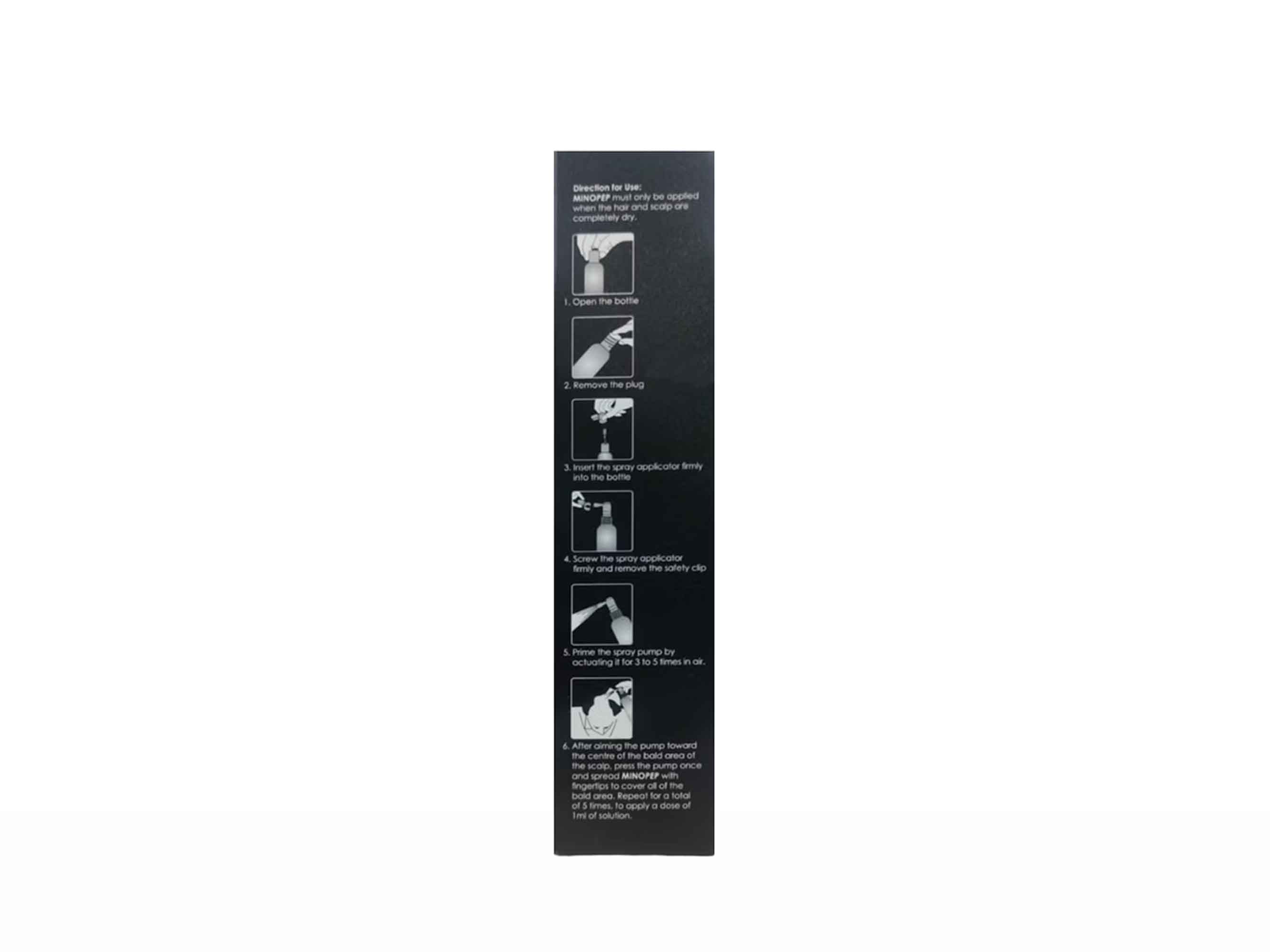 - After aiming the pump toward the centre of the bald area of the scalp, press the pump once and spread it with fingertips to cover all the bald area.