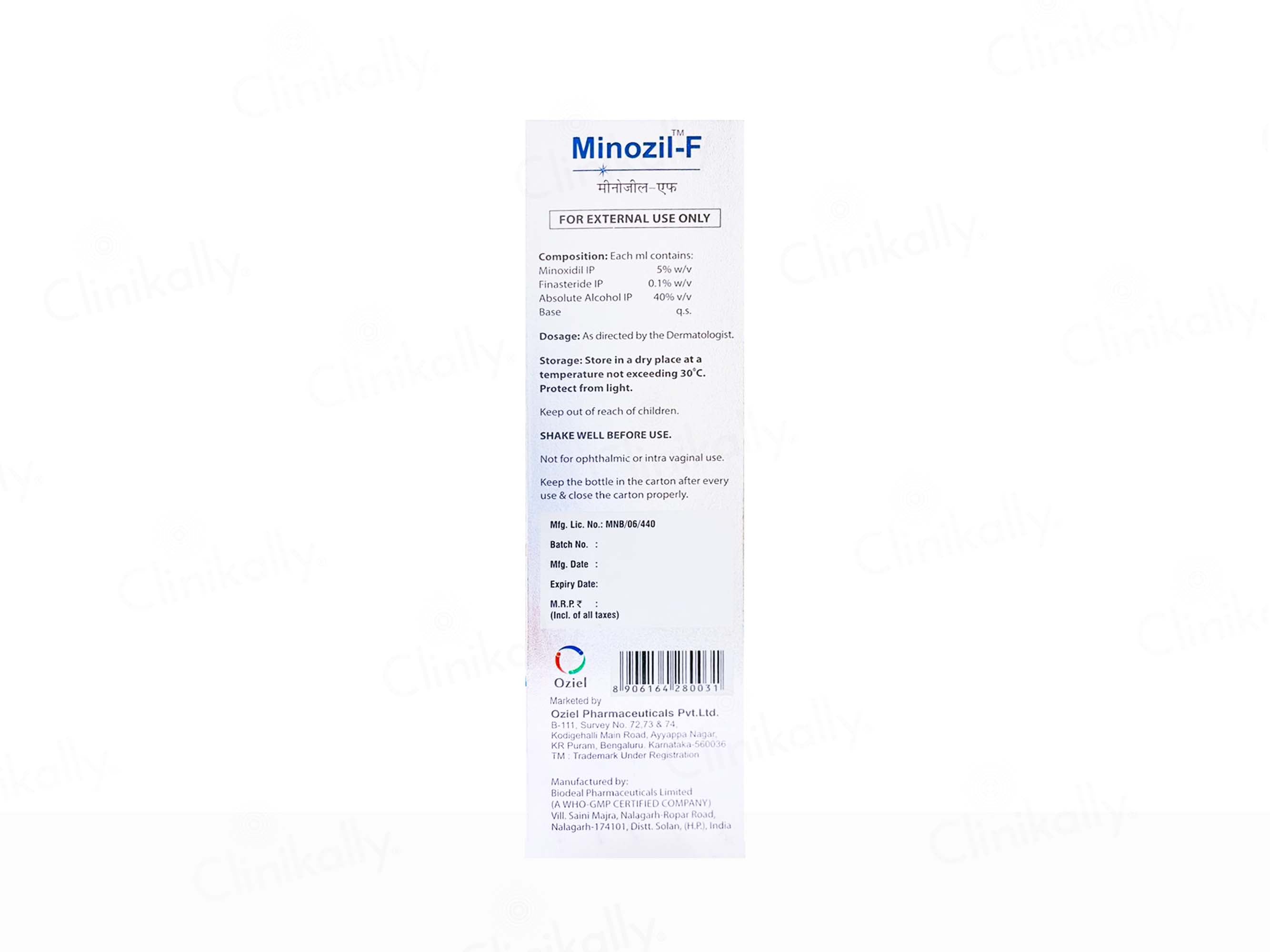 Minozil-F Topical Solution is a trusted remedy for hair loss and baldness. Featuring Minoxidil and Finasteride, it effectively promotes hair regrowth, especially in men suffering from male pattern baldness. This easy-to-apply solution revitalizes hair follicles, increasing hair density and thickness. Minozil-F Topical Solution is a reliable choice for regaining a fuller, more youthful head of hair and boosting self-confidence.