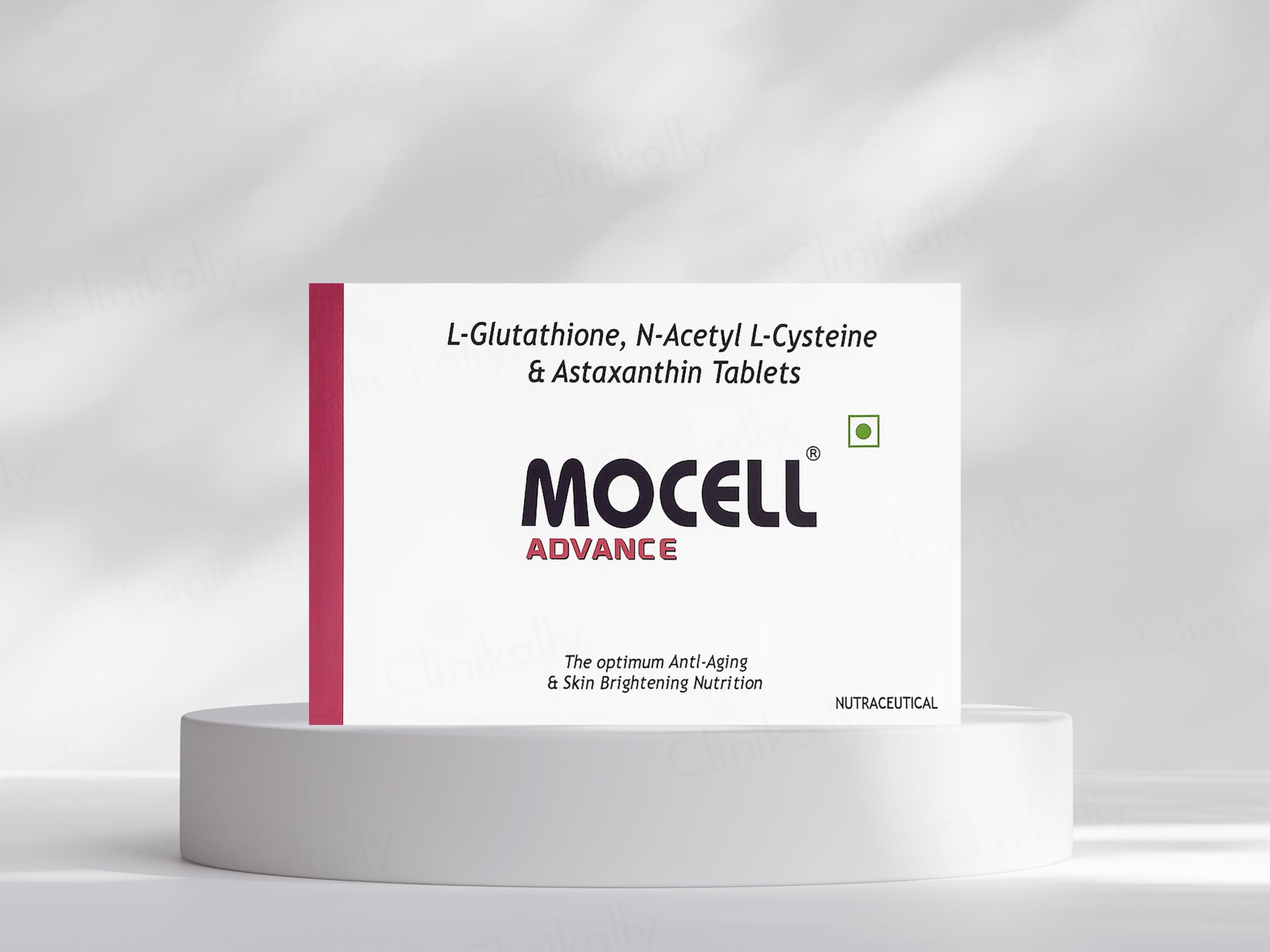 Mocell Advance Anti-Aging & Skin Brightening Nutraceutical Tablet is a dietary supplement designed to reduce signs of aging, brighten skin, and enhance overall skin health with a blend of Collagen, Vitamin C, and Glutathione. Enriched with Zinc and Vitamin E, it boosts collagen production, reduces oxidative stress, and promotes a radiant complexion. This tablet, suitable for daily use for both men and women, delivers visible anti-aging and brightening benefits over time.