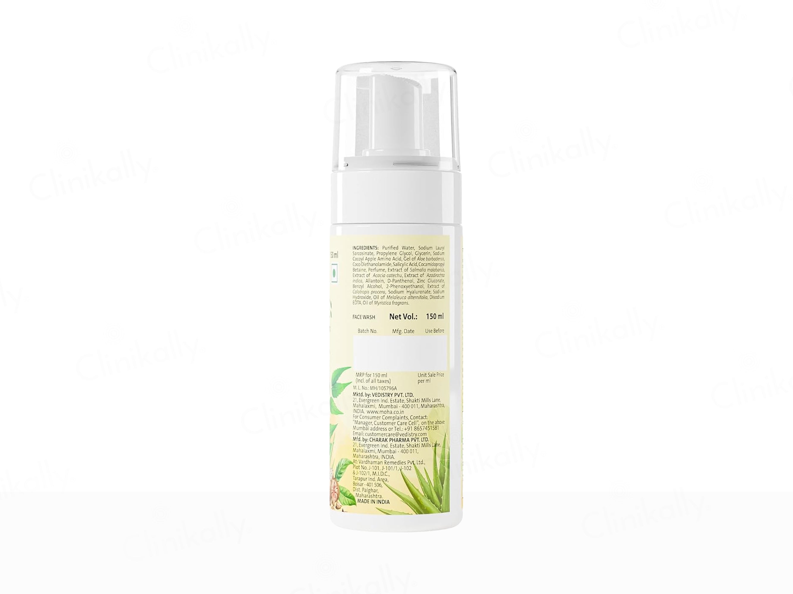 Moha: Foaming Face Wash is a gentle herbal cleanser designed to control oil and fight acne while maintaining skin's natural moisture, featuring a rich foaming lather enriched with potent Ayurvedic extracts for deep cleansing and soothing benefits. This paraben-free and sulfate-free formula harnesses the antibacterial power of Neem, hydrating Aloe Vera, cooling Cucumber, toning Rose, and complexion-enhancing Yashtimadhu (Licorice) to remove impurities, reduce blemishes, prevent breakouts, and promote soft, glowing skin suitable for all types, especially oily and acne-prone. Ideal for daily use, it gently massages into a foam for thorough yet non-drying cleansing, leaving skin refreshed and balanced.