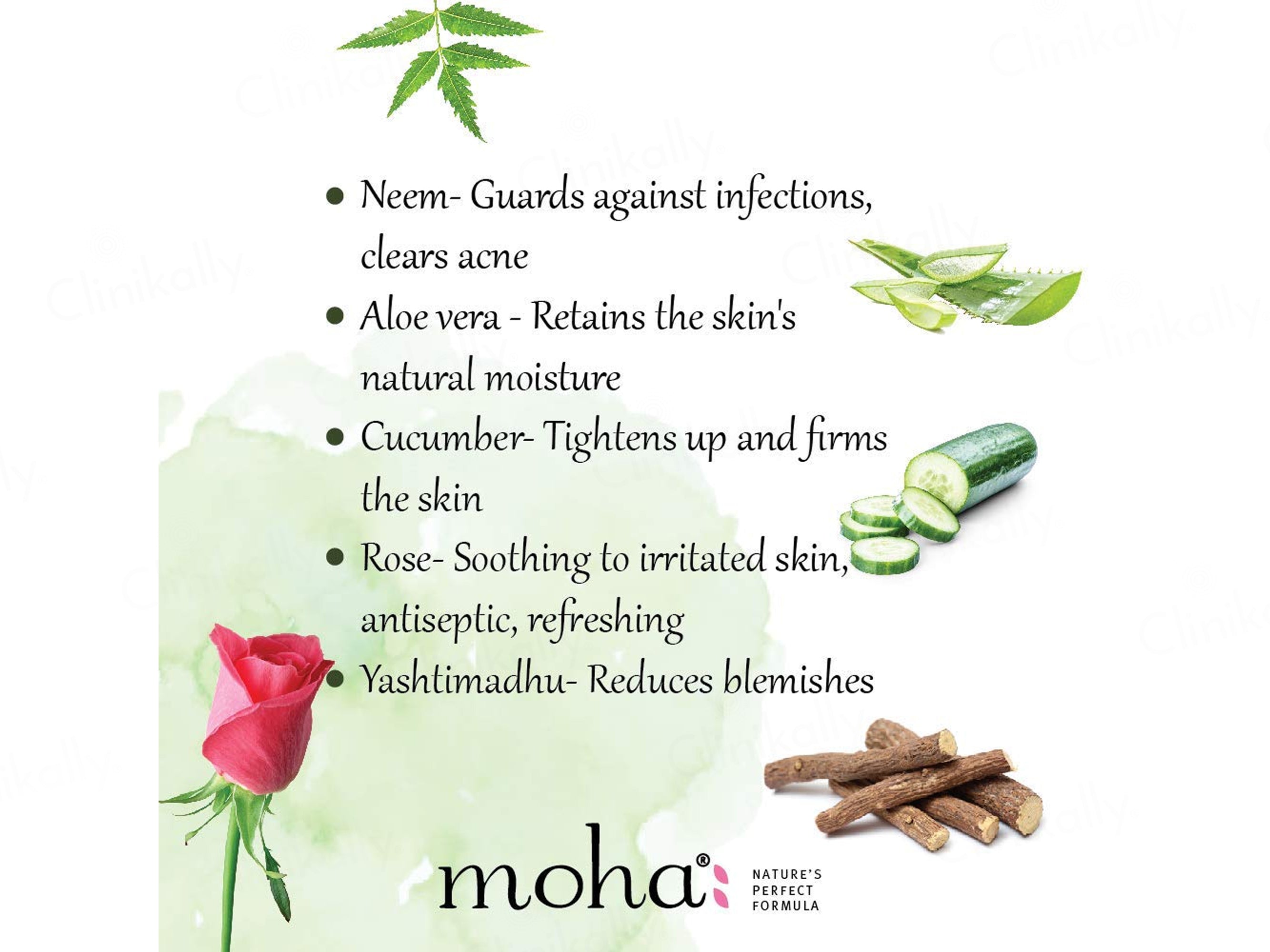 - Moisten face, apply Moha Herbal Face Wash, gently work into lather in circular motion, wash off, and pat dry.