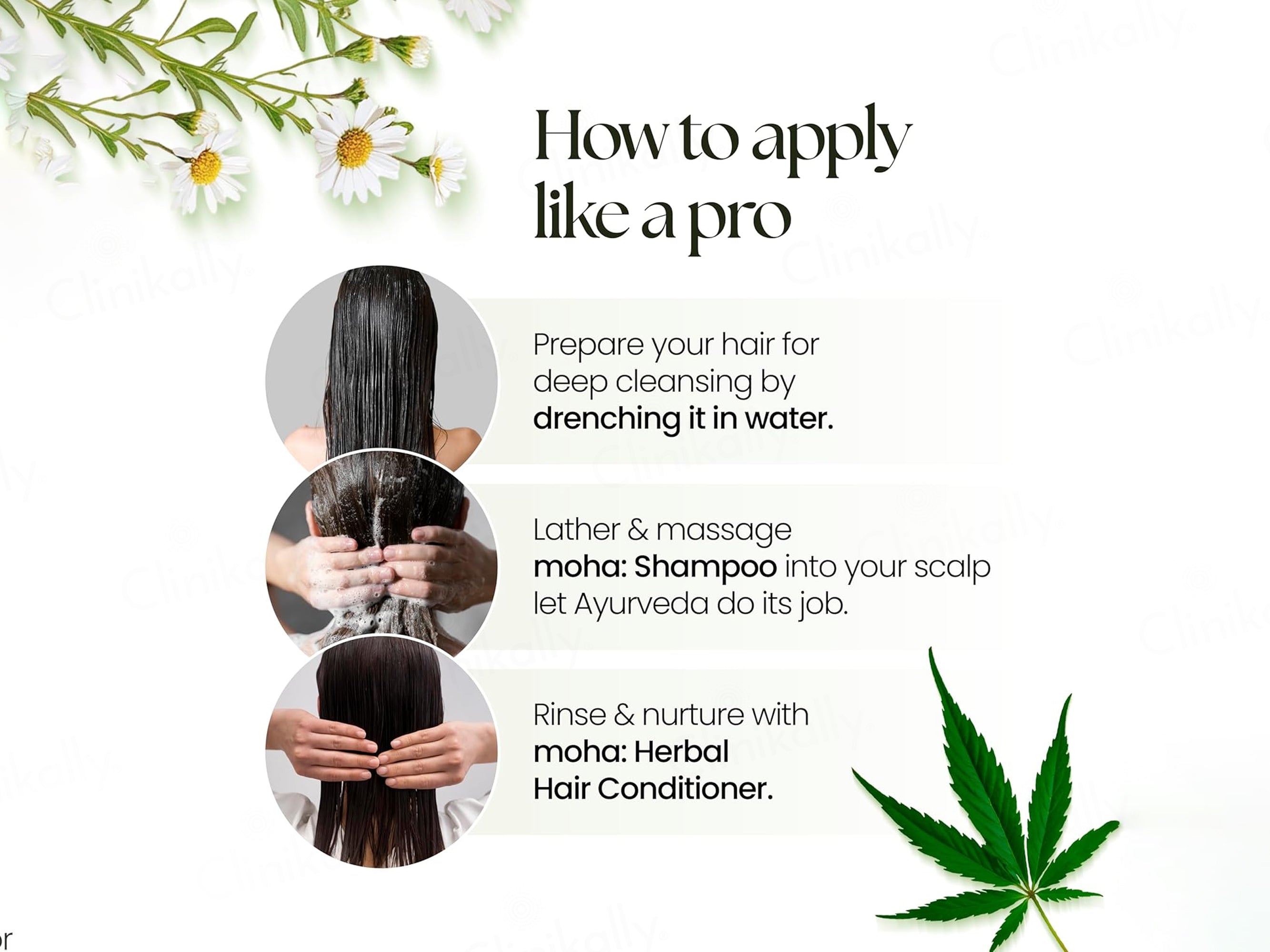 - Apply Moha Shikakai & Bhringraj Shampoo and gently massage