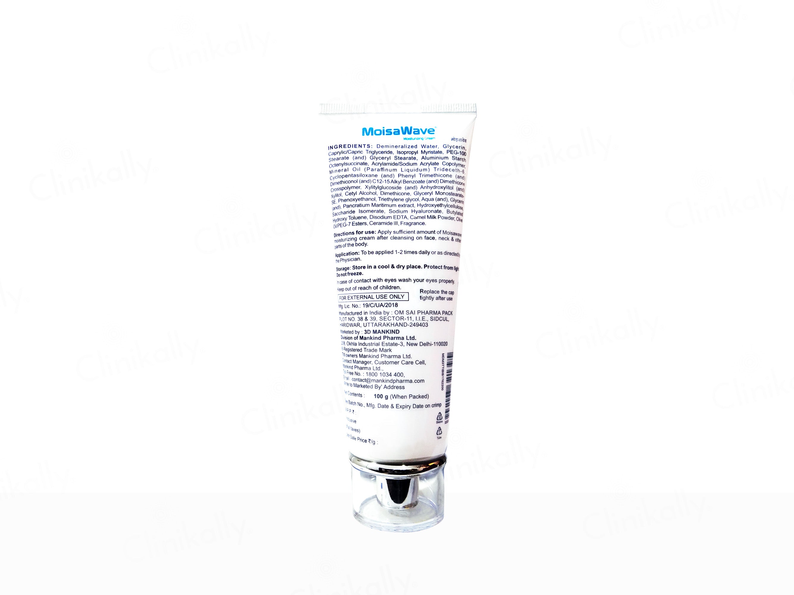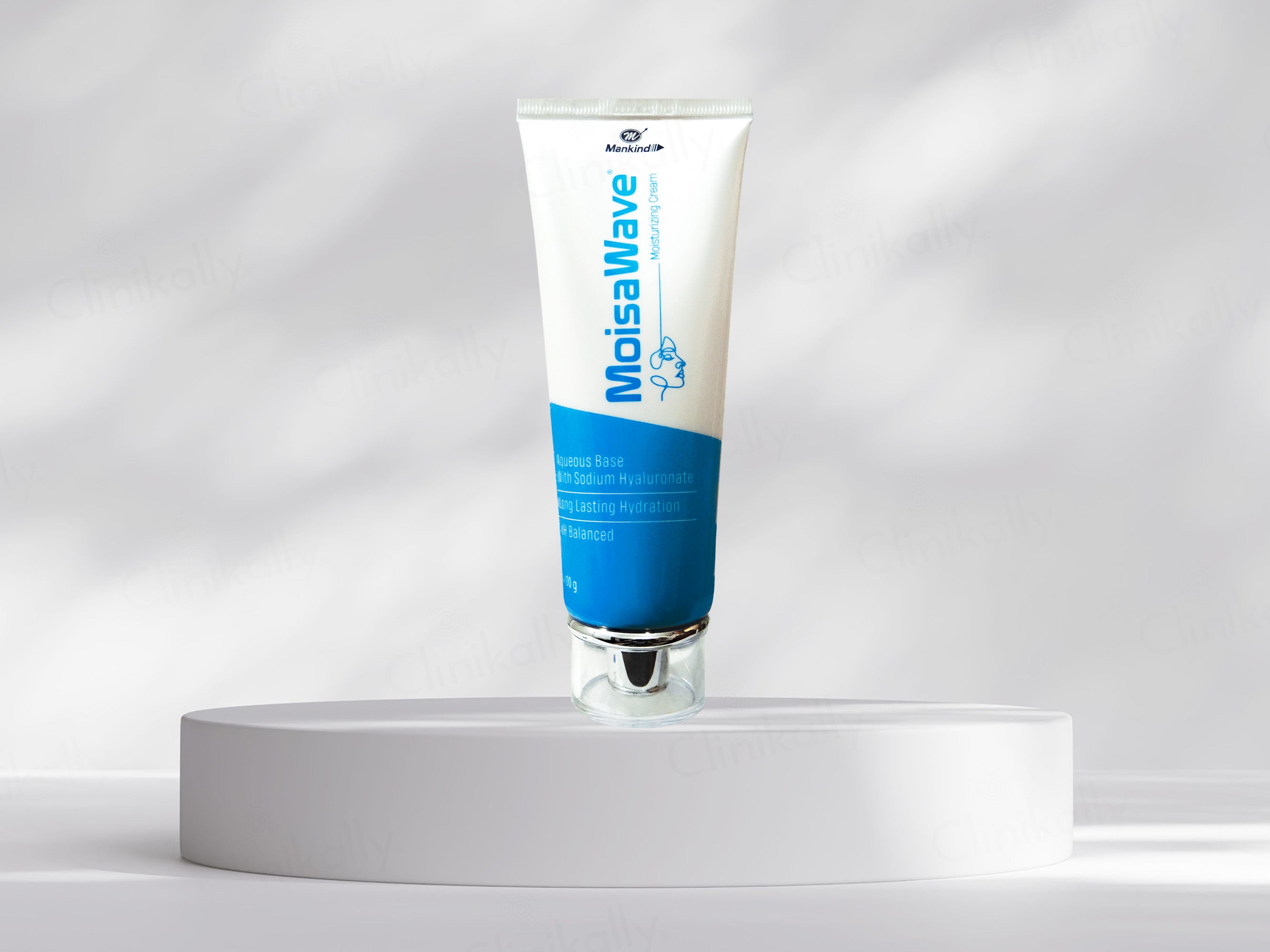 Moisawave Moisturising Cream is a skincare product formulated with an aqueous base, sodium hyaluronate, for long-lasting hydration and pH balance, enriched with honey and wheat germ oil for added benefits.
