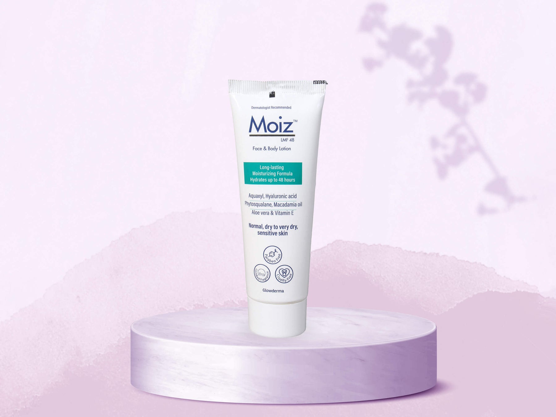 Moiz LMF 48 Face & Body Lotion is a non-comedogenic, non-sticky lotion designed to provide up to 48 hours of hydration and moisturization for normal to very dry, sensitive skin.