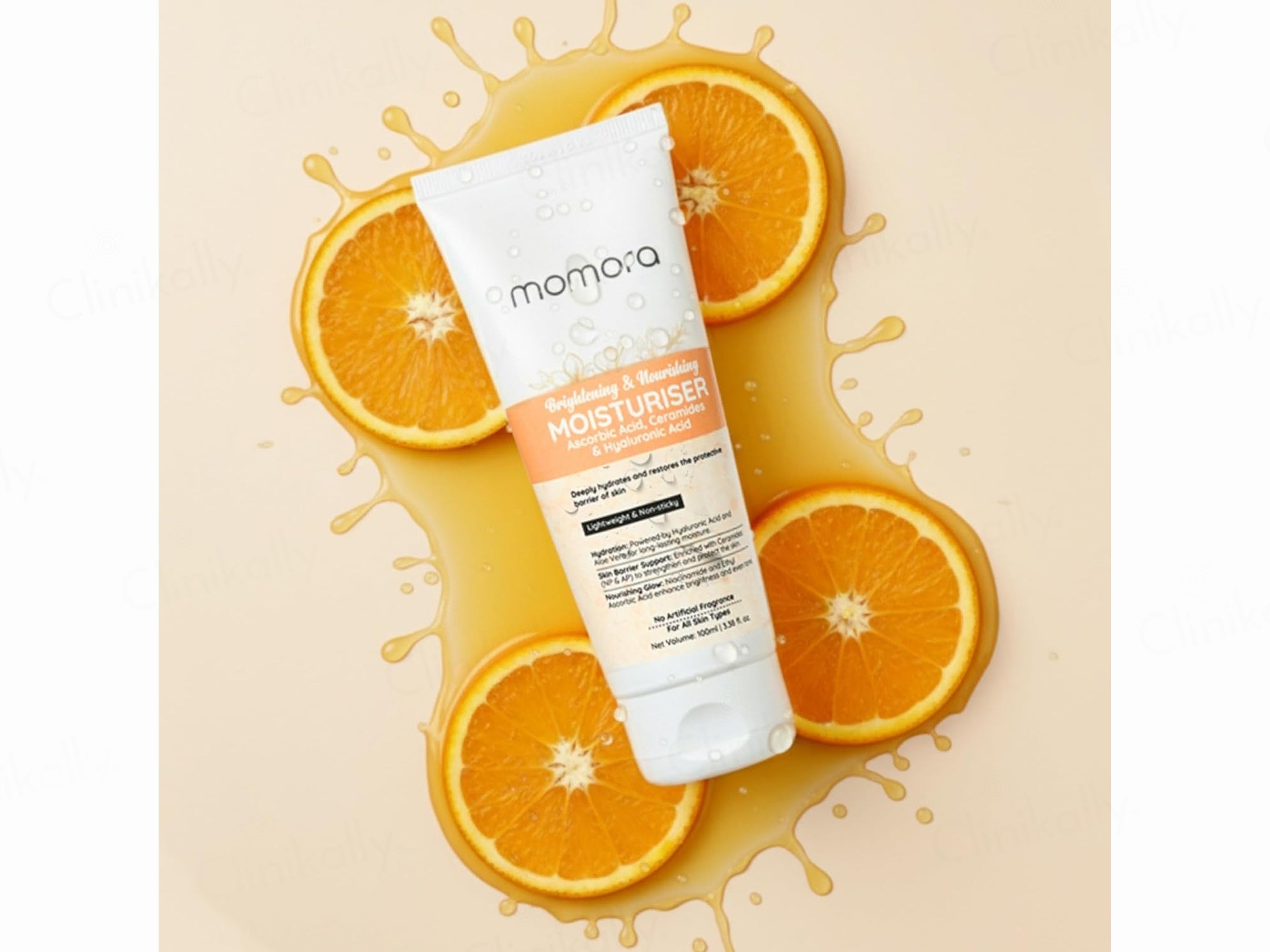 Momora Brightening & Nourishing Lightweight Moisturiser is a daily-use hydrating formula designed to brighten the complexion, nourish the skin, and strengthen the skin barrier while maintaining a lightweight, non-greasy feel suitable for all skin types. It is formulated with Niacinamide to help improve skin tone and radiance, Kakadu Plum Extract rich in Vitamin C to support brightness and antioxidant protection, and Sodium Hyaluronate to deliver deep hydration and plump the skin, complemented by Ceramide NP and Ceramide AP to reinforce the skin barrier and prevent moisture loss. The moisturiser is further enriched with Aloe Barbadensis Leaf Juice to soothe the skin, Centella Asiatica Extract to calm and support skin repair, Cucumber Fruit Extract for refreshing hydration, Camellia Sinensis (Green Tea) Leaf Extract for antioxidant care, and D-Panthenol to enhance skin softness and resilience, making it ideal for daily moisturizing while promoting a healthy, luminous complexion.