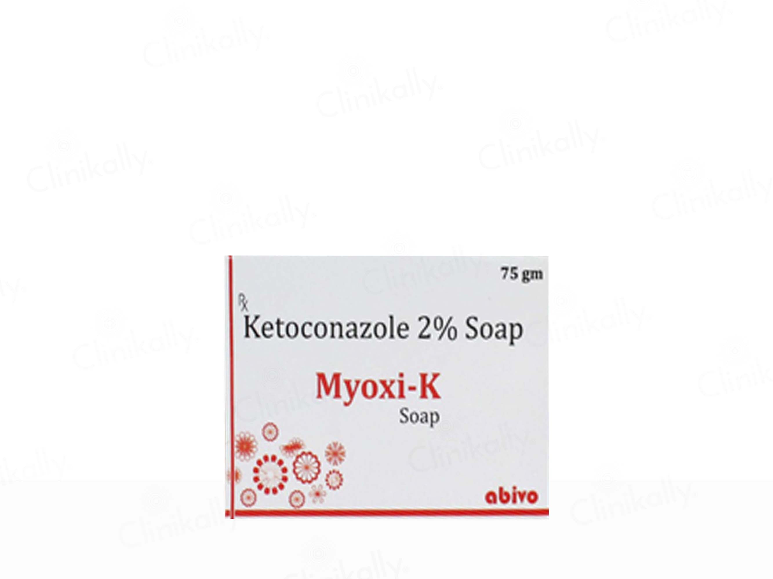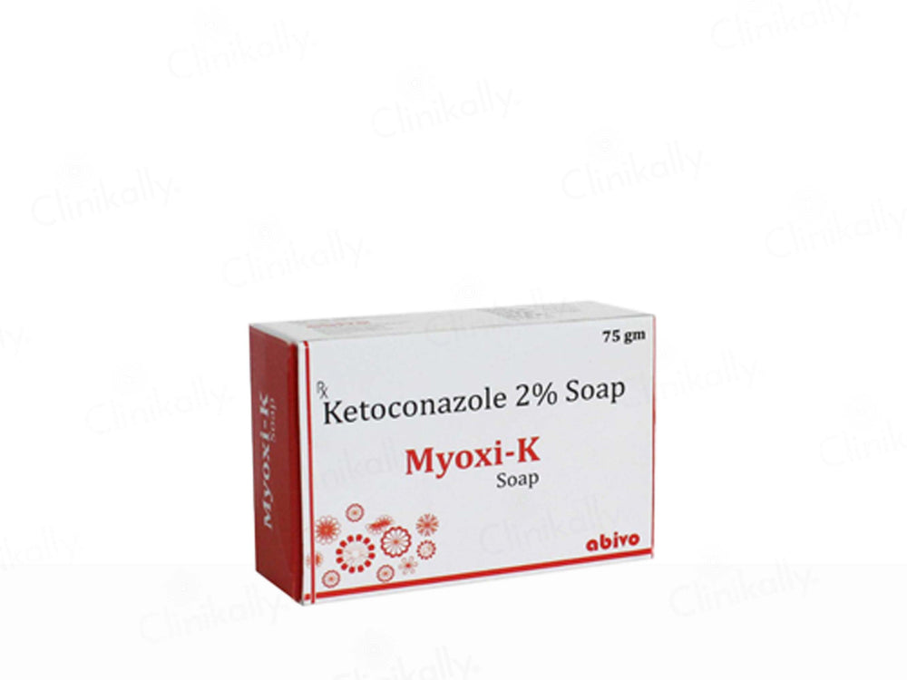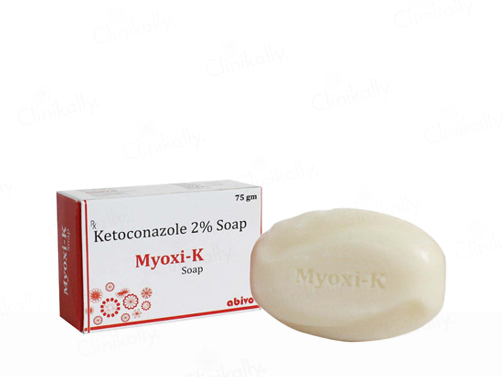 Myoxi-K Soap is a medicated antifungal cleanser containing Ketoconazole 2% w/w, used to treat and prevent fungal skin infections.