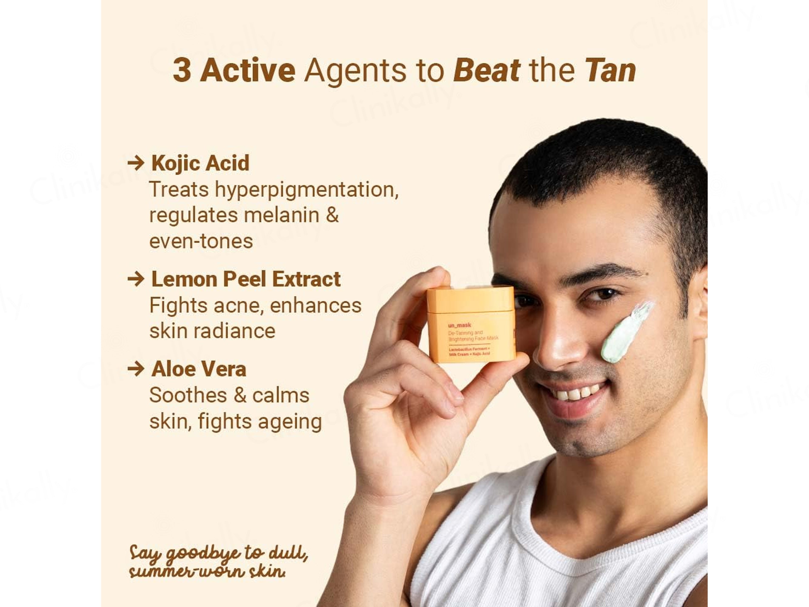 - Brightens dull, uneven skin.