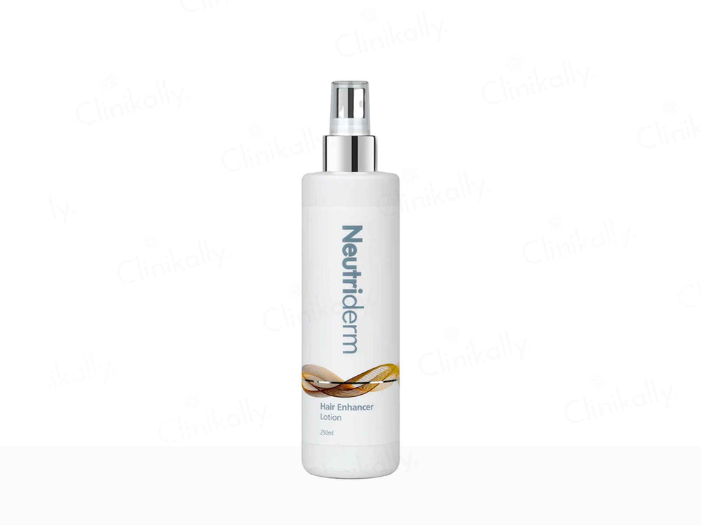 Neutriderm Hair Enhancer Lotion fortifies hair roots, enhances scalp blood circulation, and nourishes hair with ingredients like biotin and panthenol.