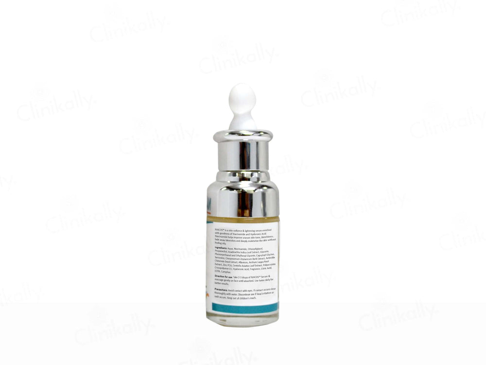 Niacos Niacinamide Skin Radiance & Lightening Serum is a skincare product enriched with niacinamide and hyaluronic acid, designed to enhance skin radiance and promote an even complexion.