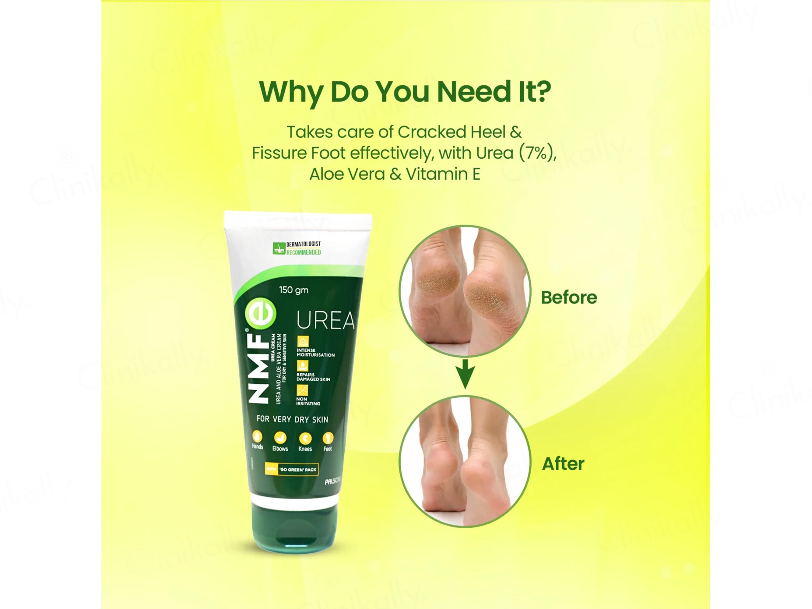 For best results, use NMFe Urea and Aloe Vera Cream regularly on targeted areas like feet and palms. You can use it daily or as needed.