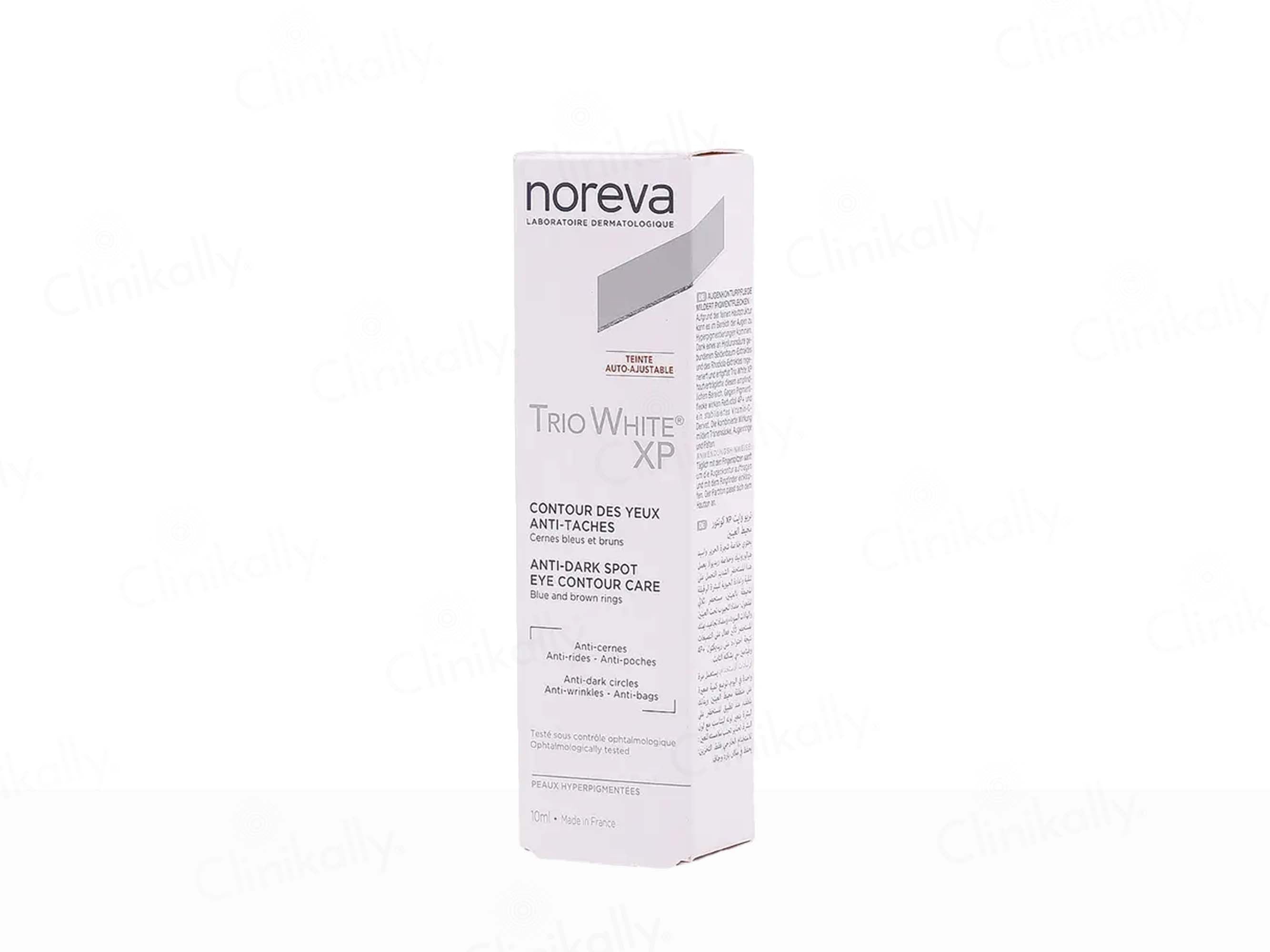 Noreva Trio White XP Anti-Dark Spot Eye Contour Care is a specialized treatment designed to visibly reduce blue and brown under-eye circles, wrinkles, and puffiness. Formulated for hyperpigmented skin, this ophthalmologically tested cream targets dark spots around the eyes while delivering intense hydration and anti-aging benefits. With its auto-adjustable tint, it instantly brightens the under-eye area while improving skin texture over time. Ideal for sensitive skin, this advanced eye contour care smooths fine lines, reduces bags, and restores radiance, making eyes appear more refreshed and youthful with regular use. Perfect for daily application.