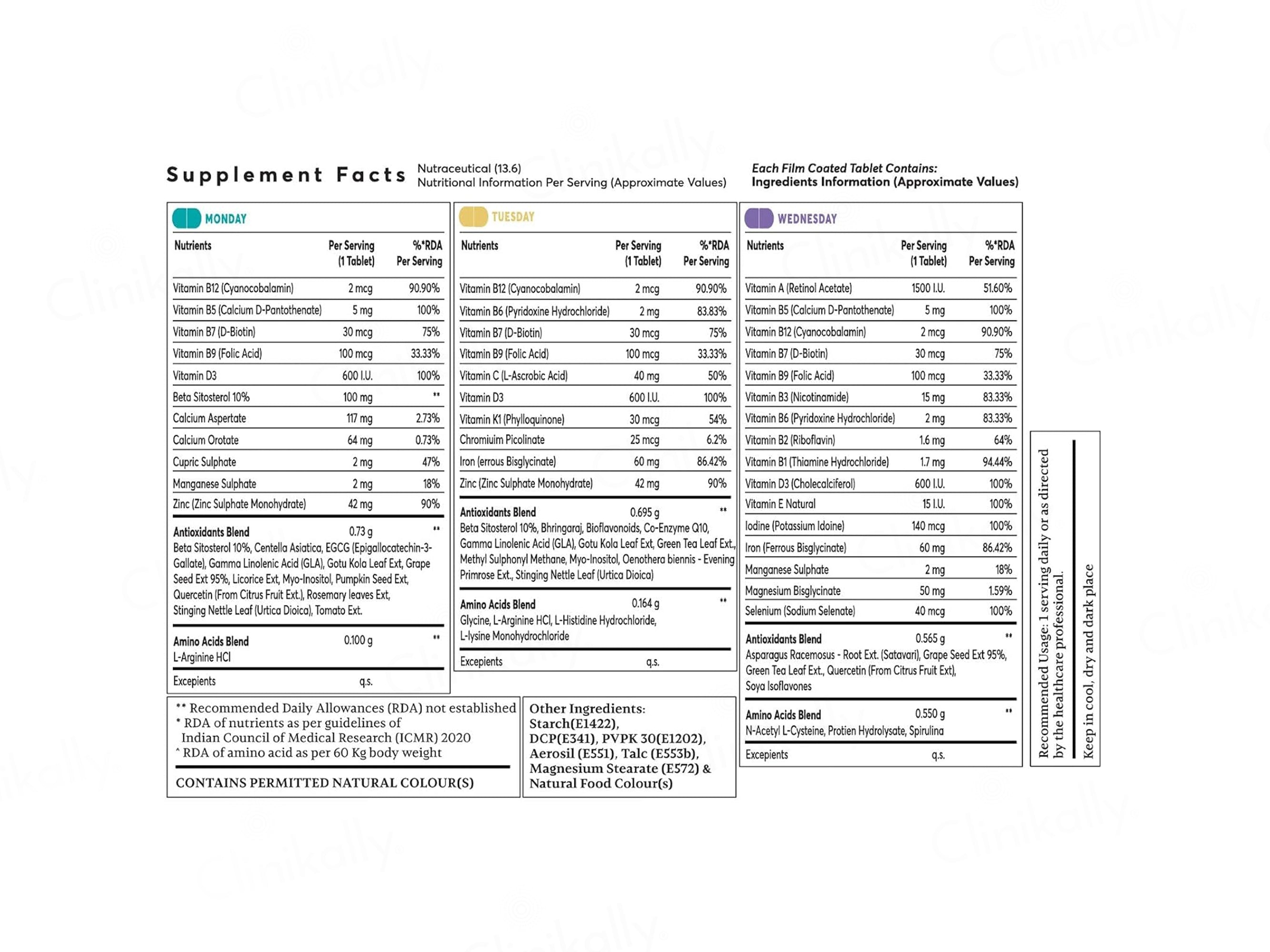 - Take 1 tablet of Nourrir Cyclical Therapy Hair Supplement Tablet For Men daily or as directed by your healthcare professional.