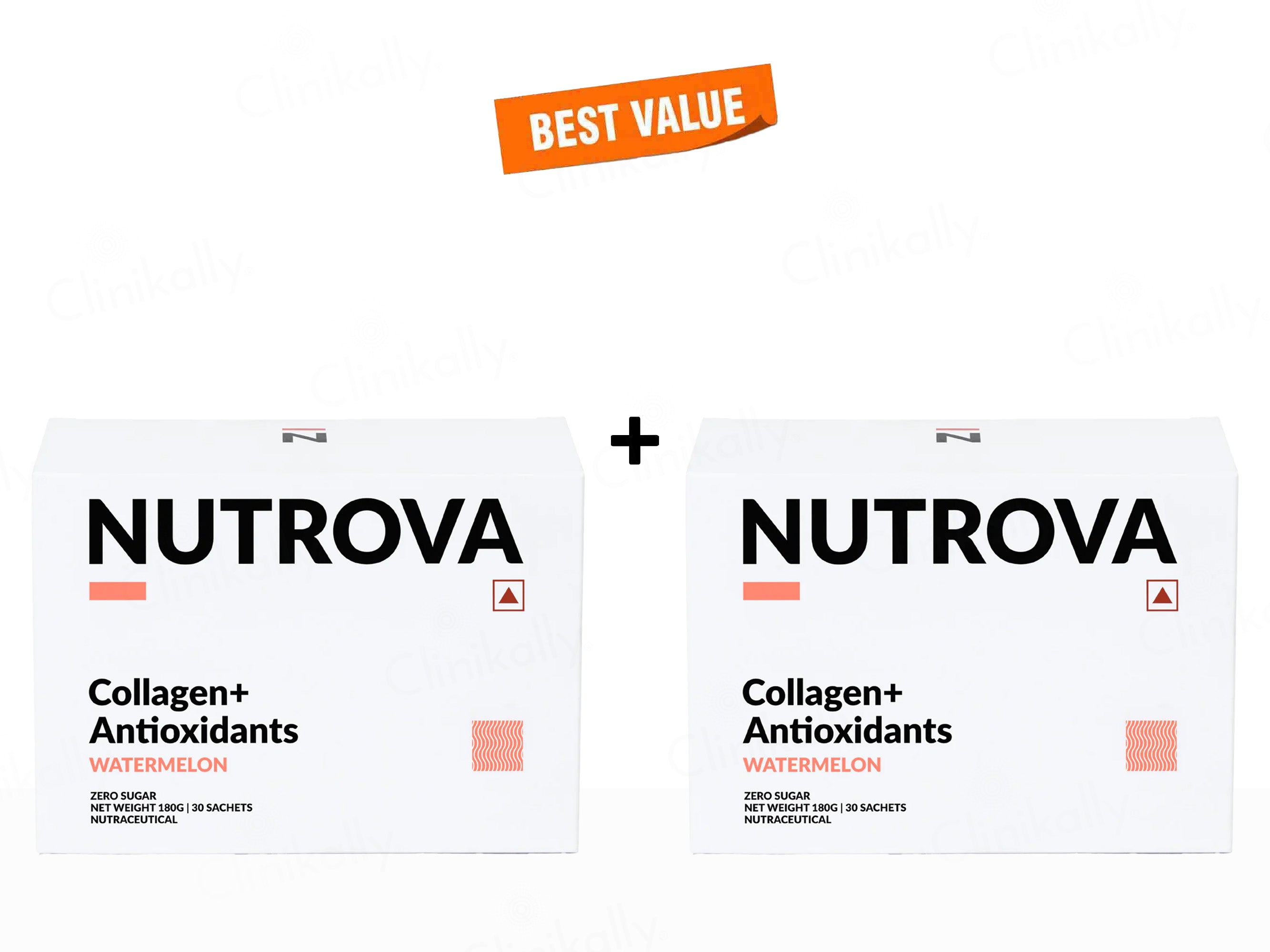 Nutrova Collagen+ Antioxidants is a powerhouse blend designed to renew and protect your skin. Formulated to enhance collagen structure, it safeguards against daily damage while boosting hydration, firmness, and elasticity. Say goodbye to dullness, wrinkles, pigmentation, and roughness as this potent formula works to rejuvenate and revitalize your skin for a radiant, youthful complexion. The power of Vitamins C and E, and Taurine helps nourish skin cells that also aid in collagen production.