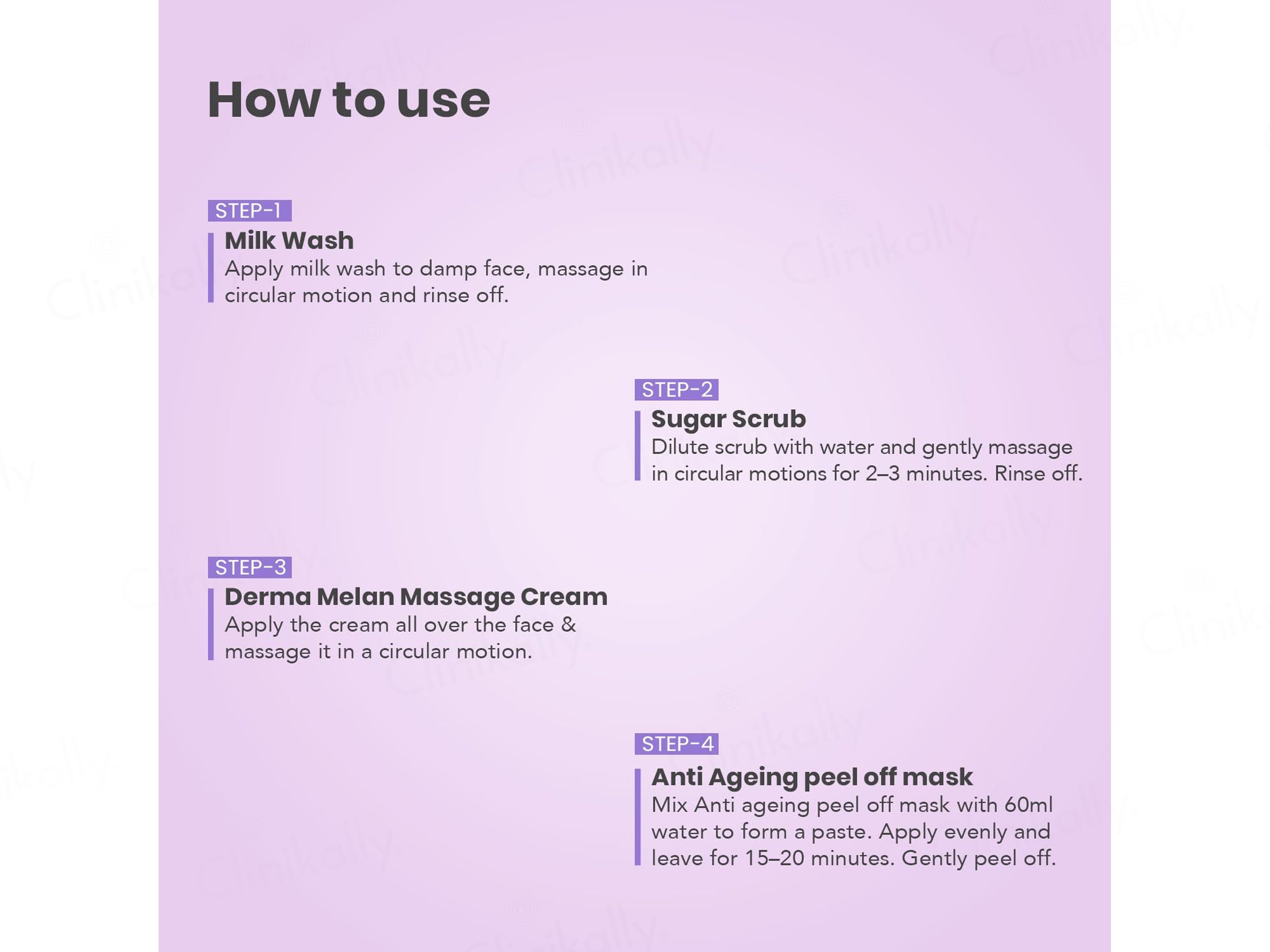 - Apply the Milk Wash from O3+ Anti-Ageing Single Use Facial Kit to damp face, massage, and rinse.