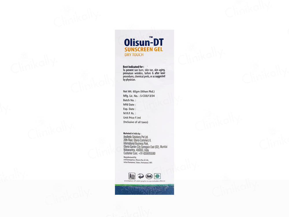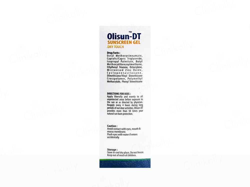 Olisun-DT Dry Touch Sunscreen Gel SPF 50+ PA+++ provides broad-spectrum protection with SPF 50+ and PA+++, shielding the skin from harmful UVA and UVB rays.