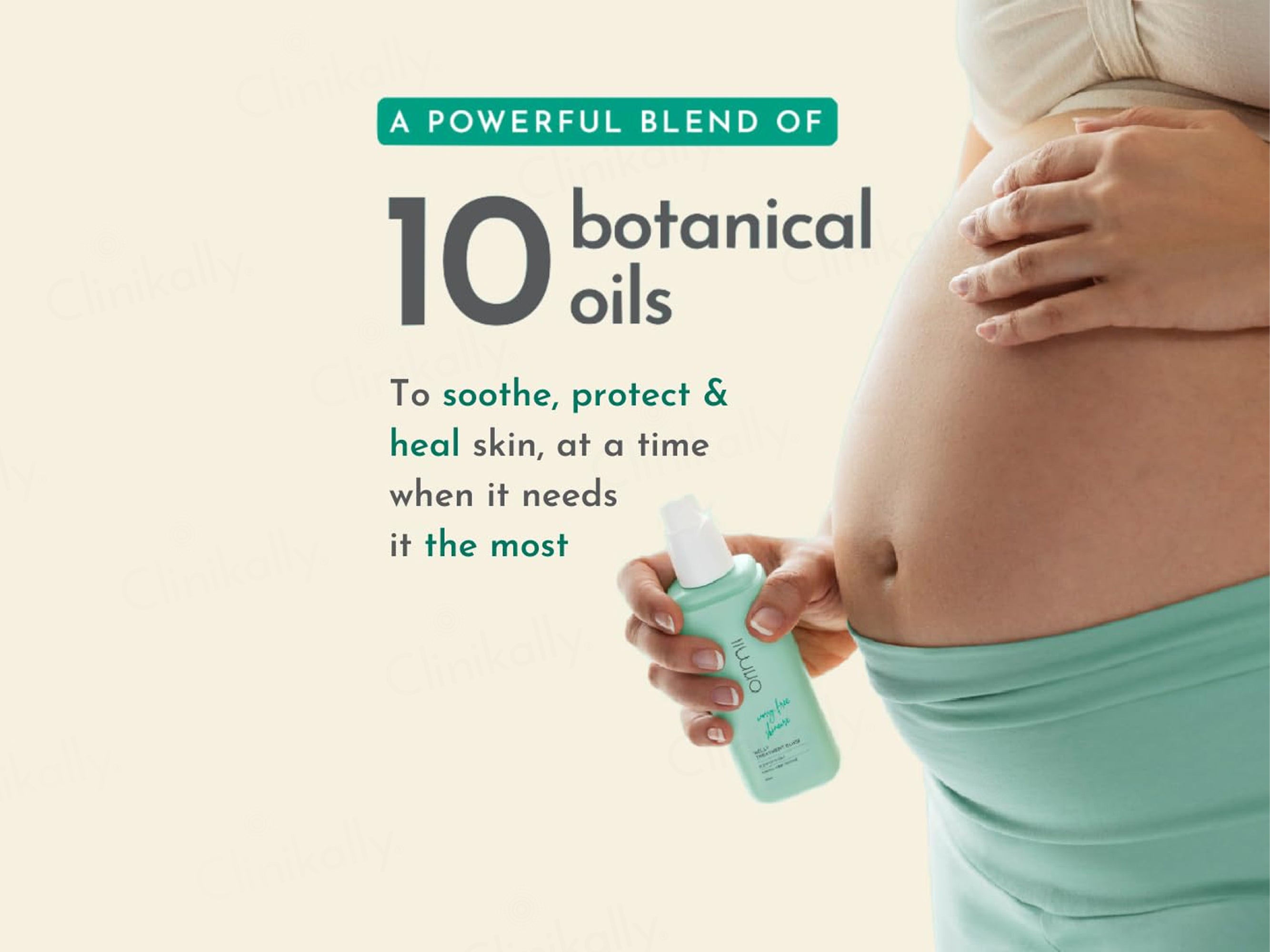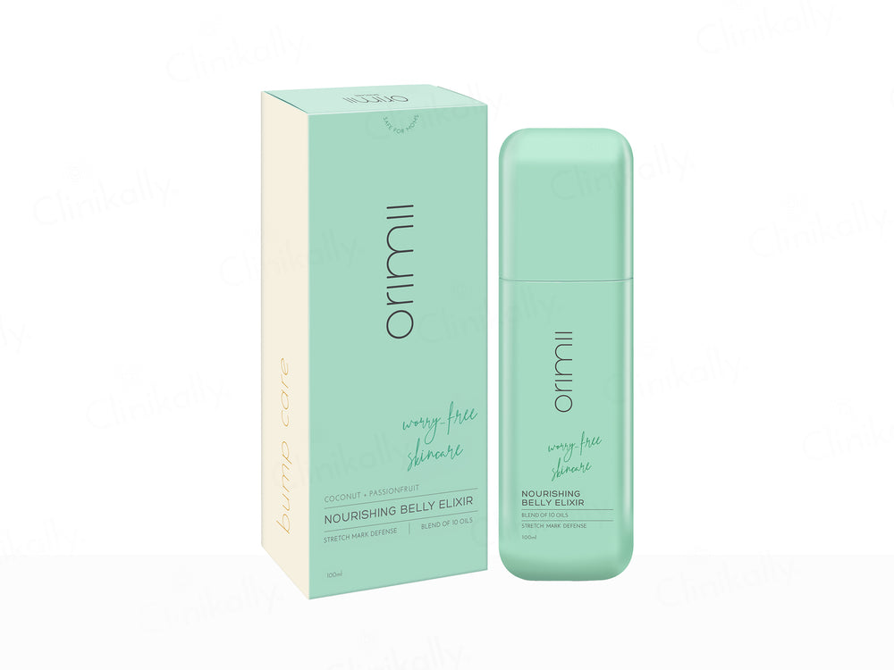 Orimii Belly Treatment Elixir For Stretch Marks is a worry-free skincare product designed to deeply moisturize skin, help it stretch comfortably, and prevent tearing during pregnancy or growth phases. This ultra-light, non-sticky blend of 10 oils, including Sunflower, Jojoba, Sweet Almond, and Turmeric, repairs the skin barrier, lightens existing stretch marks, soothes irritated skin, and gets absorbed quickly. Made without 21 potentially harmful ingredients, it’s safe for use during pregnancy and nursing.