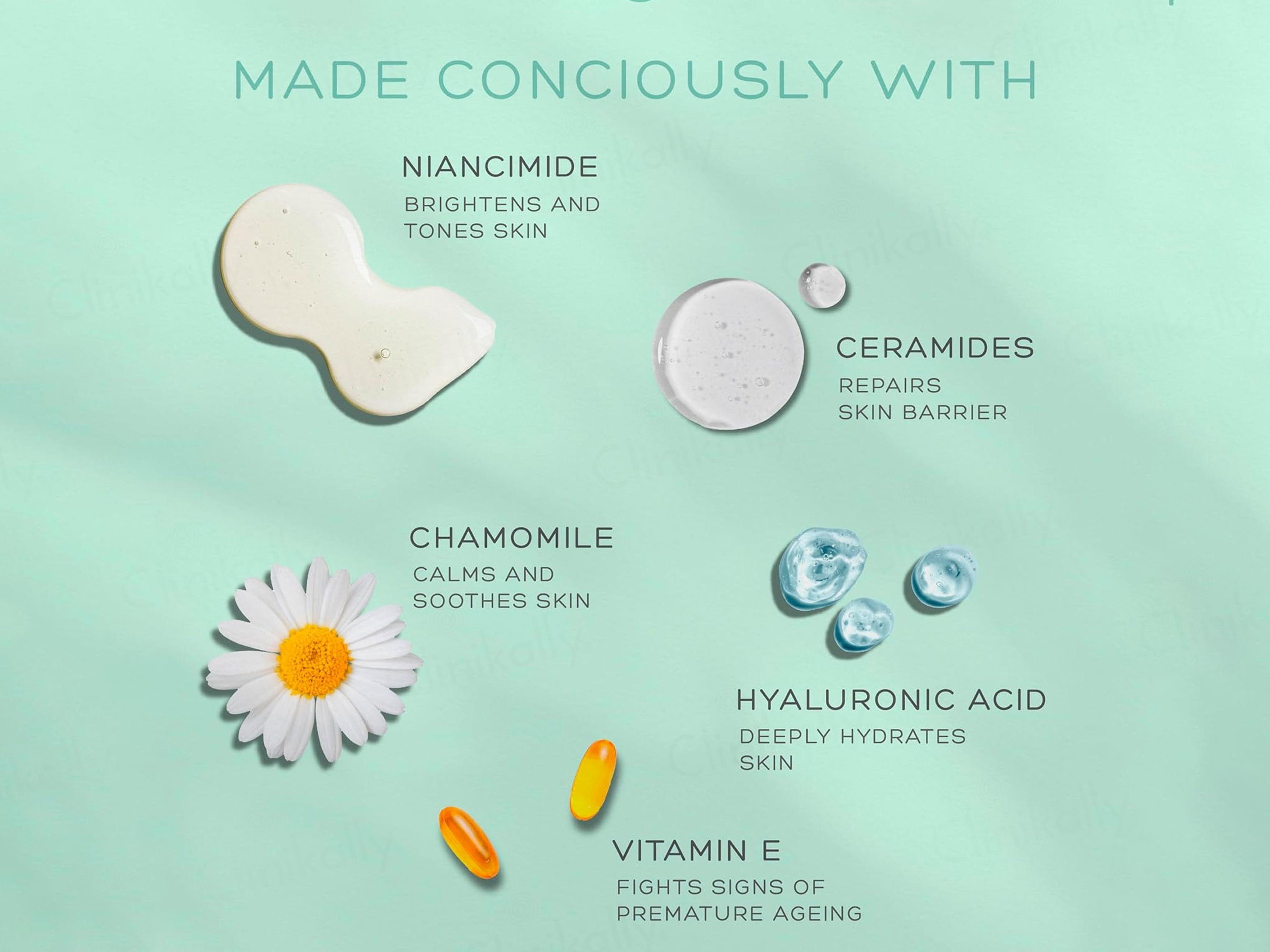 Yes, it includes Chamomile and Green Tea extracts for soothing and repair.