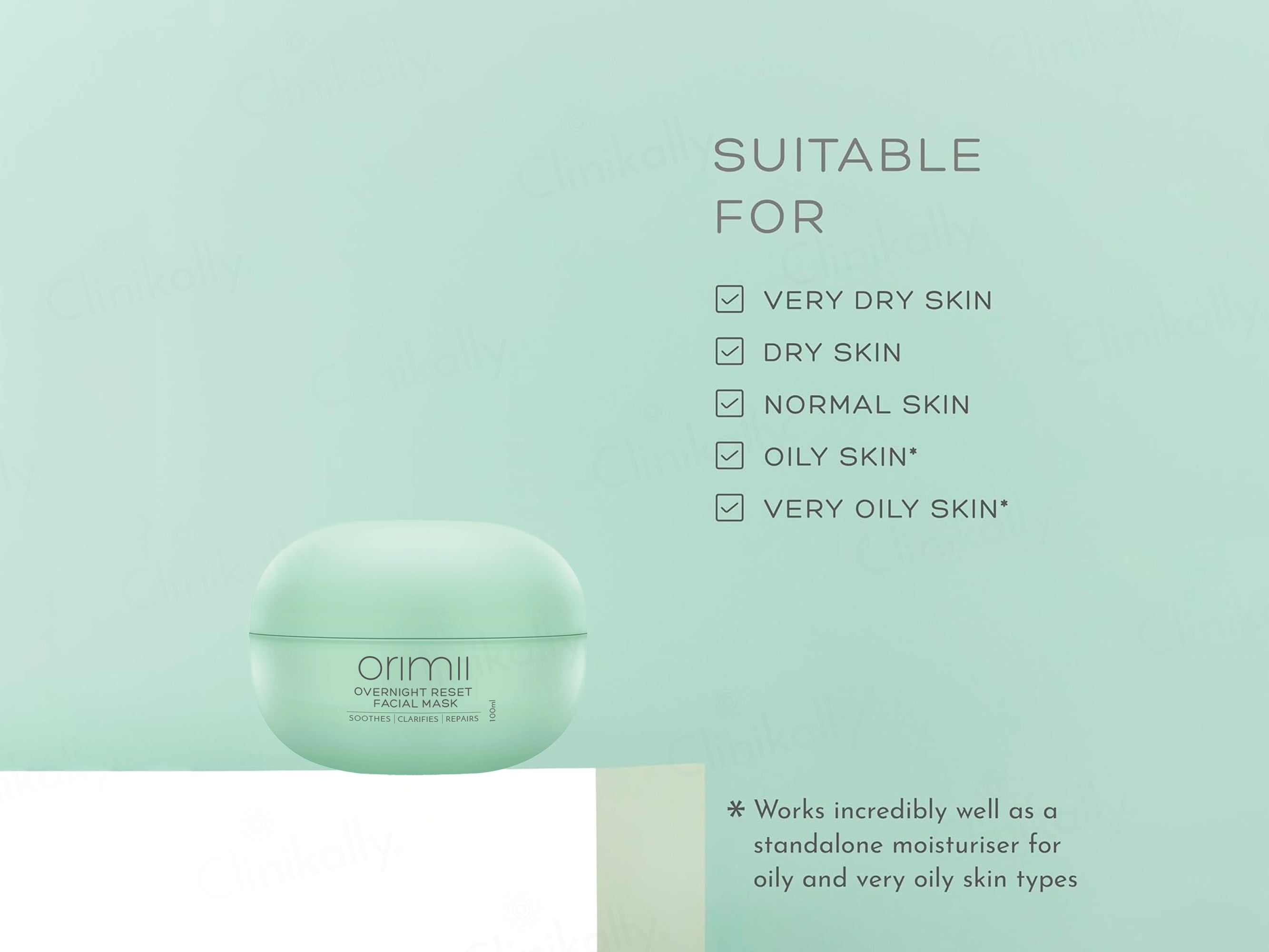 Orimii Overnight Reset Sleeping Face Mask is a cream that hydrates, repairs, and brightens skin overnight using Niacinamide and Ceramides.