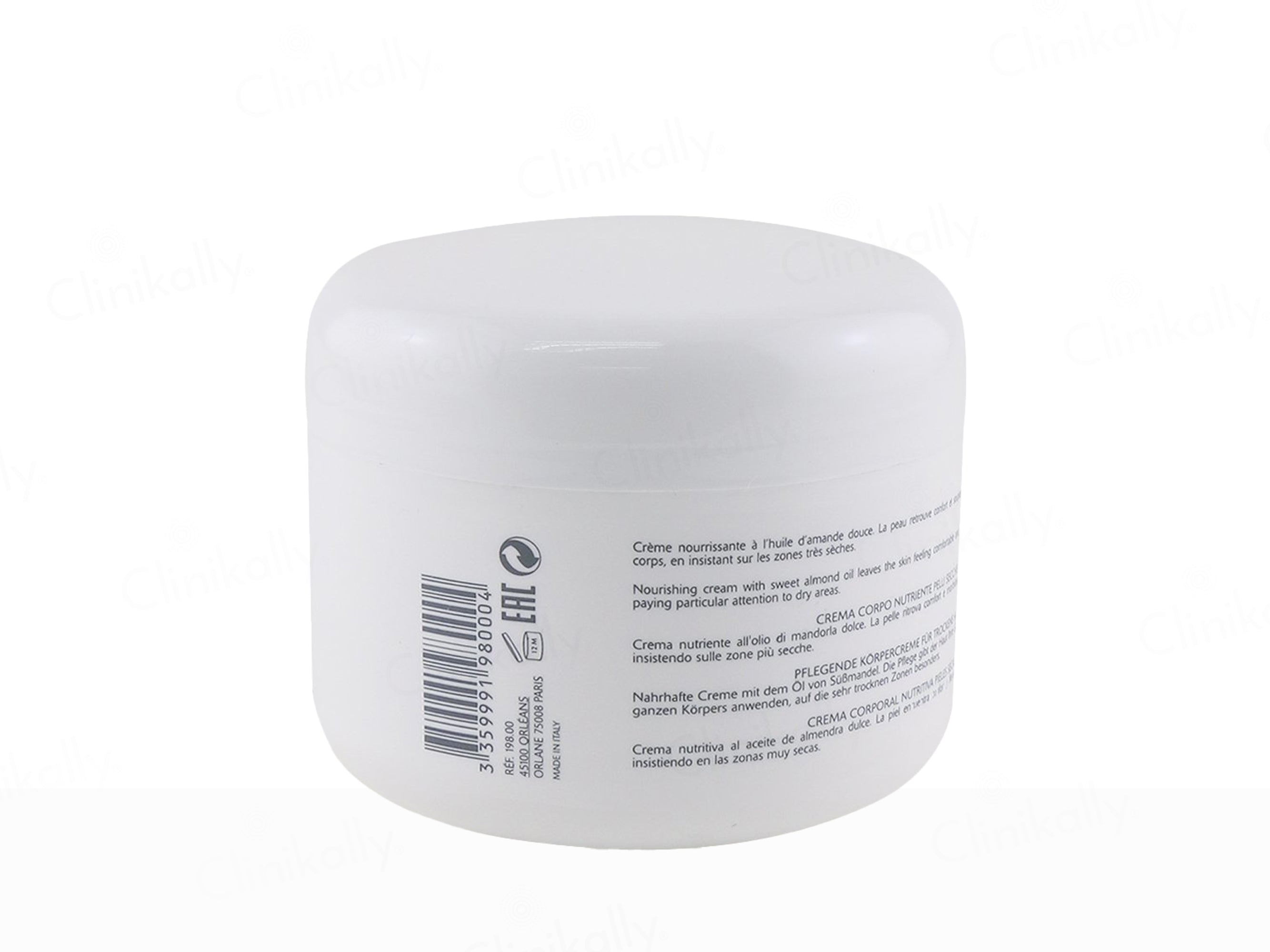 Orlane Paris Nourishing Body Cream For Dry Skin is a rich, comforting body care formula specially created to intensely nourish, soften, and restore comfort to dry skin, as shown in the images, leaving the body feeling smooth, supple, and deeply cared for. The nourishing formula is enriched with Sweet Almond Oil to soften and improve skin elasticity, Glycerin to provide long-lasting hydration, Shea Butter–like emollient support from Ethylhexyl Palmitate to enhance skin softness, Lecithin to help strengthen the skin barrier, Citrus Aurantifolia (Lime) Fruit Extract to refresh and revitalize the skin, Tocopherol to deliver antioxidant protection, Ascorbyl Palmitate to support skin vitality, and Behennyl Alcohol to improve moisture retention and texture. With regular use, this nourishing body cream helps relieve dryness, restores smoothness, and maintains healthy-looking, comfortable skin throughout the day.