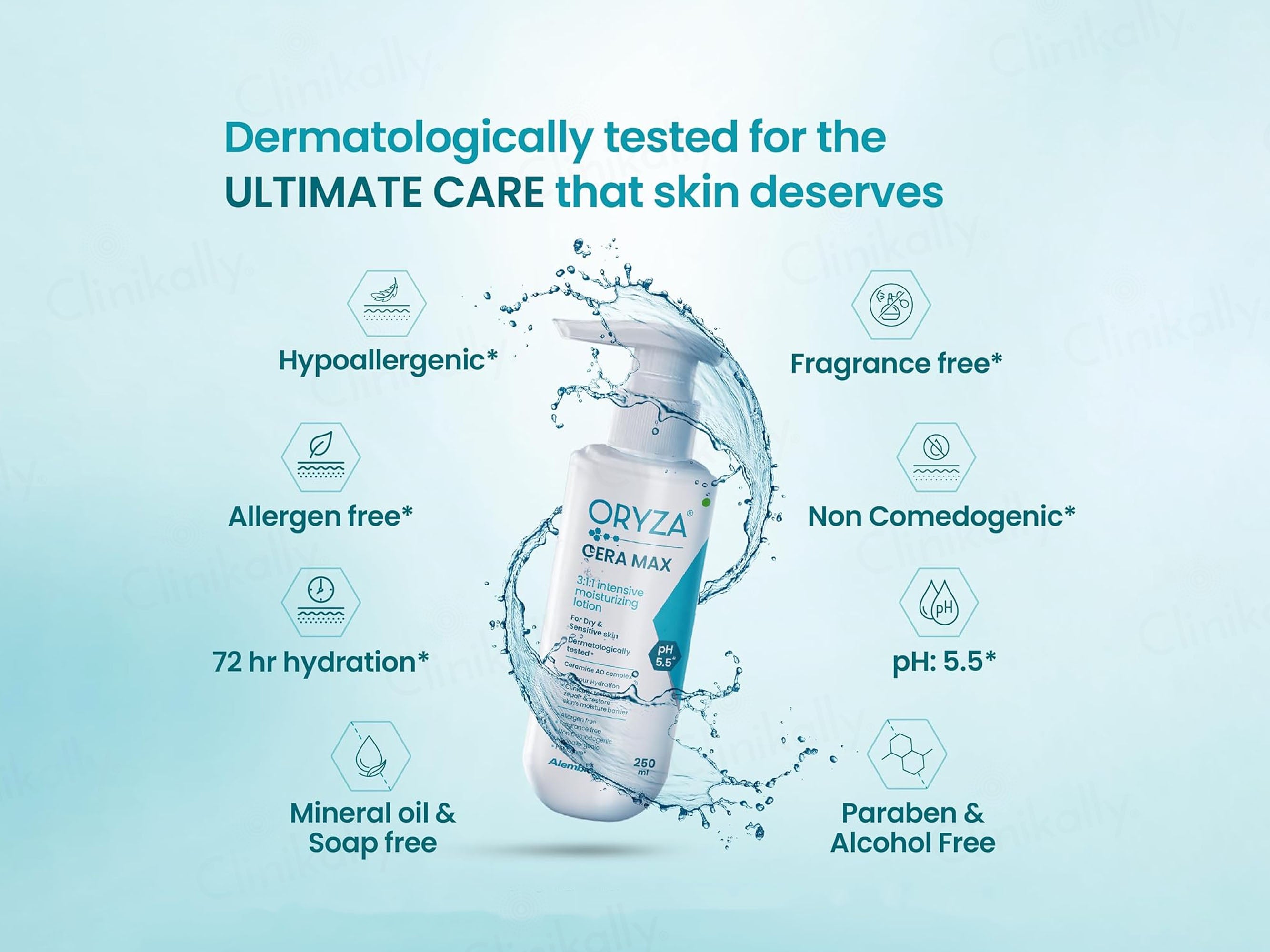 - Apply a generous amount of Oryza Cera Max Intensive Moisturizing Lotion to clean, dry skin.