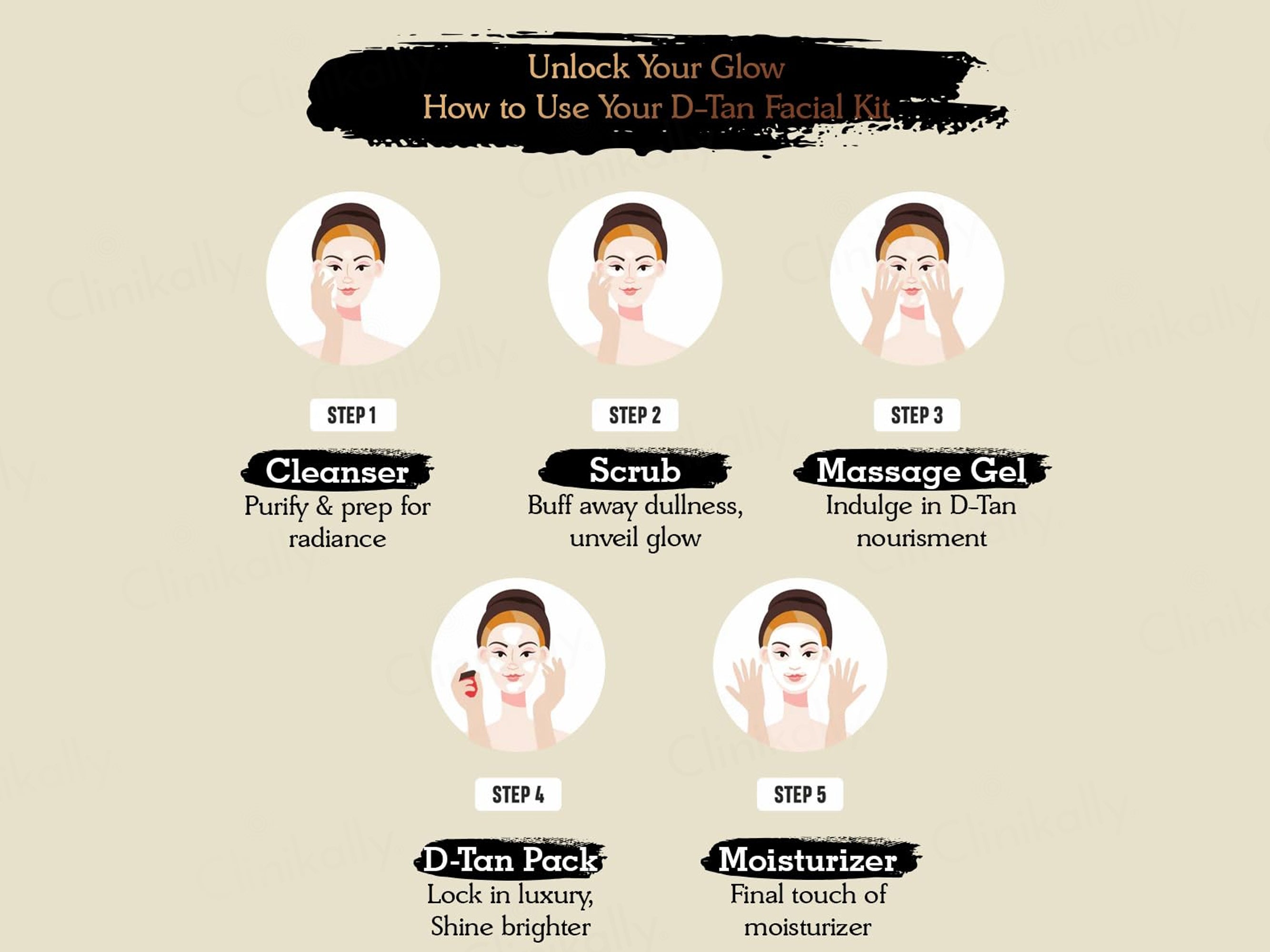 - Apply D-Tan Cleanser all over the face for 3–4 minutes, then wipe off with a soft towel.