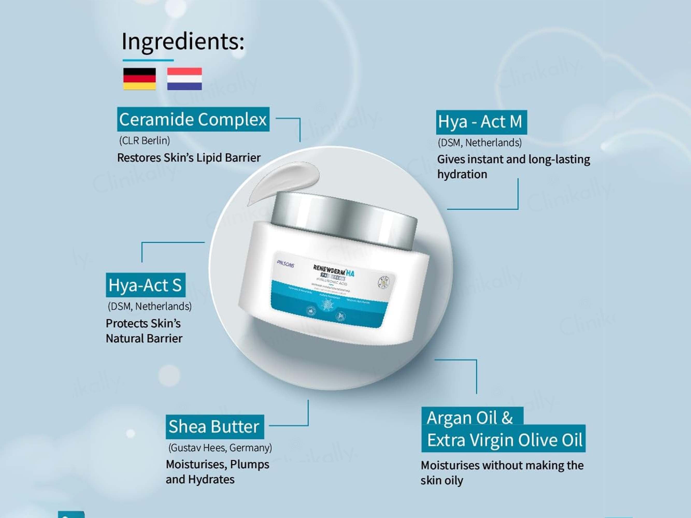 Palsons Renewderm HA Face Cream is a deeply hydrating moisturizer that provides intense moisture, improves skin elasticity, and reduces fine lines, leaving the skin soft, smooth, and radiant.