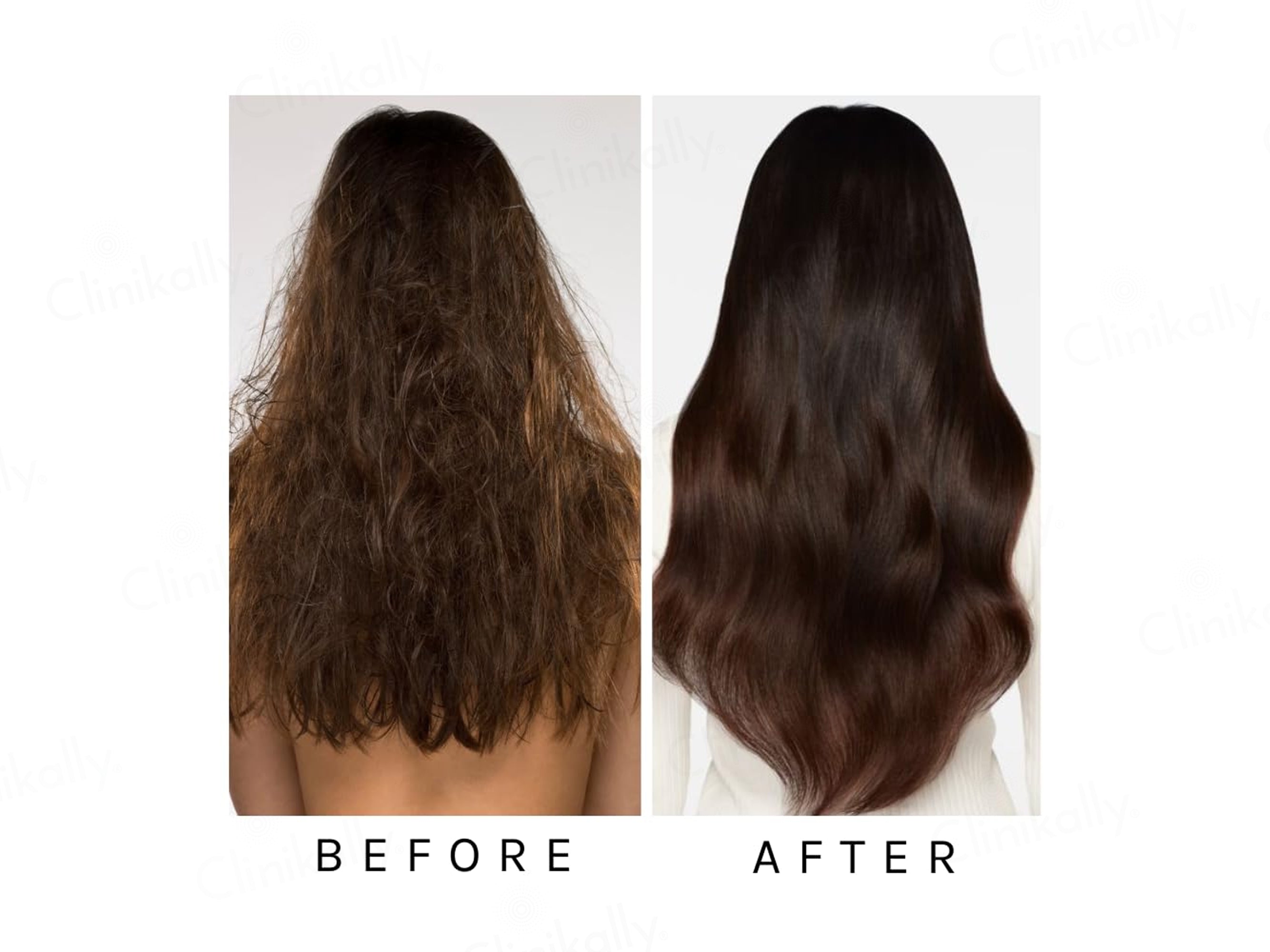 It nourishes, reduces frizz, and strengthens hair with natural extracts.