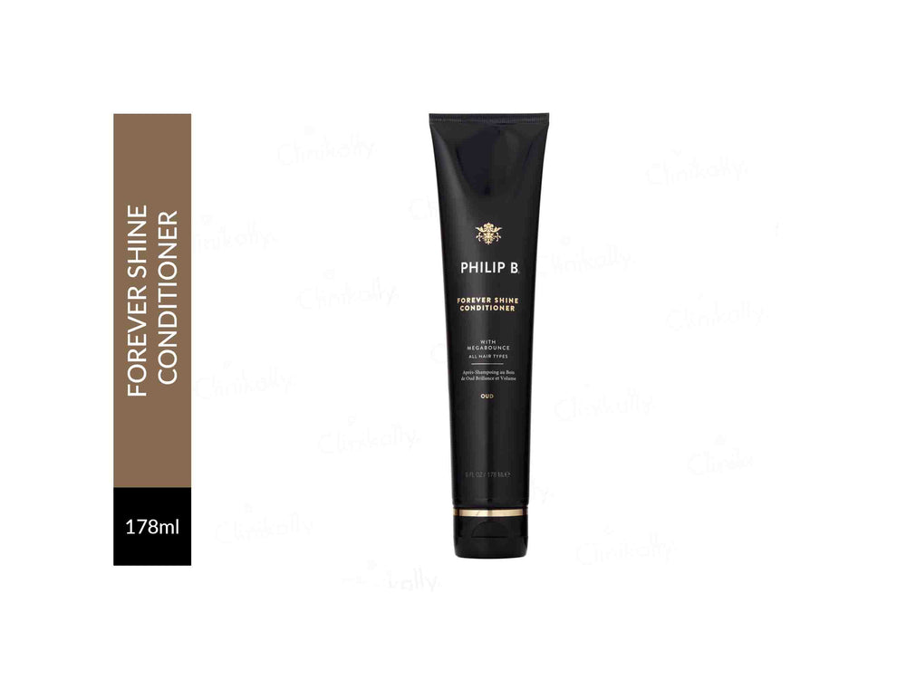 Philip B Forever Shine Conditioner is a luxurious, next-generation formula powered by time-released safflower oleosomes and an advanced amino acid complex to deeply hydrate, smooth, and revitalize hair. Perfect for all hair types—including fine, frizzy, and curly—it delivers long-lasting softness, volume, and frizz control. Enriched with panthenol and oat peptides, it strengthens strands while leaving a weightless, silky feel. Infused with the seductive scent of pure Oud, this color-safe conditioner enhances shine and elasticity, making every shade look rich, glossy, and vibrant with every use. Ideal for daily indulgence.