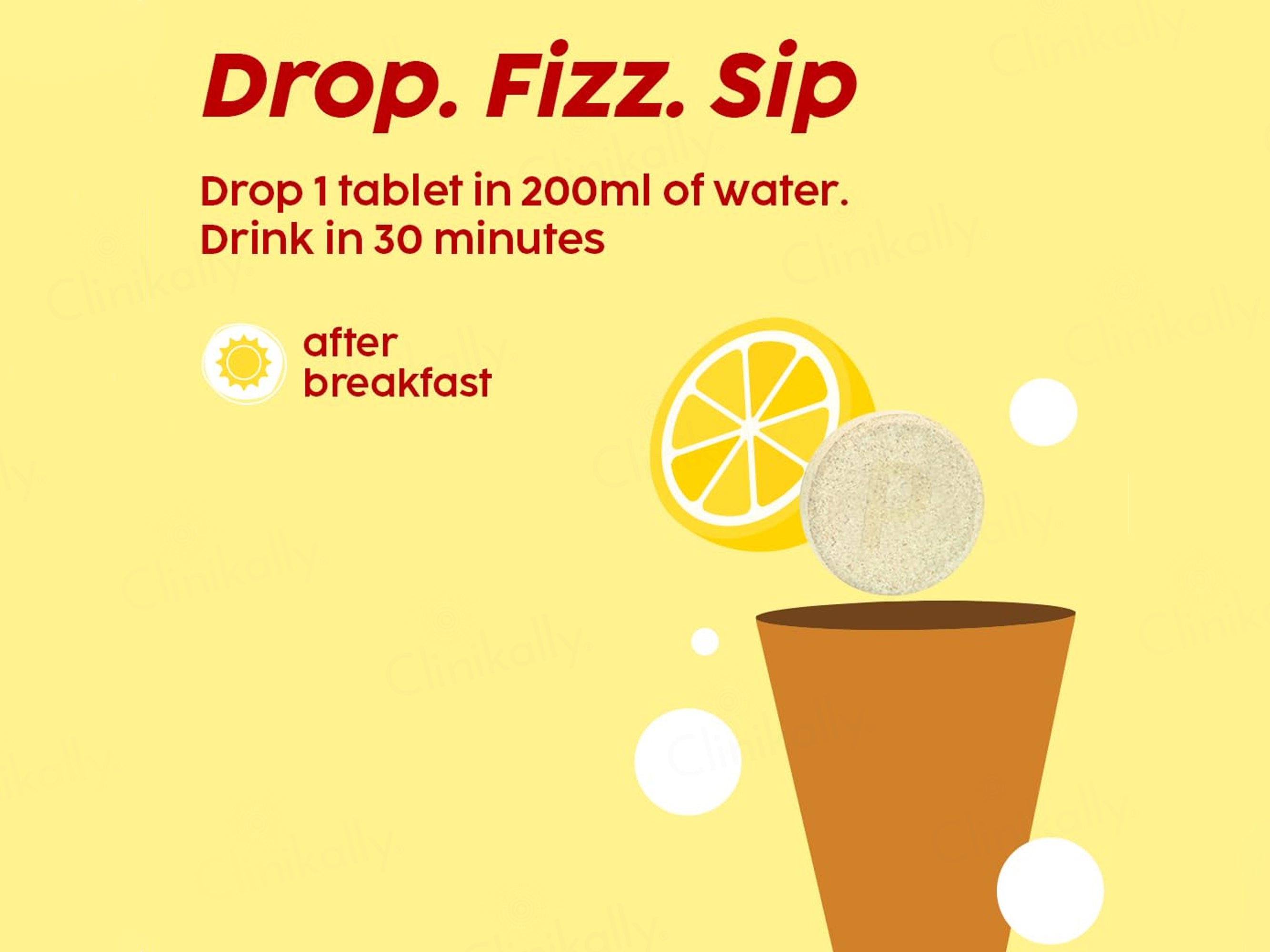 • Drop 1 effervescent tablet into 200 ml of cold water and let it fully dissolve before sipping.