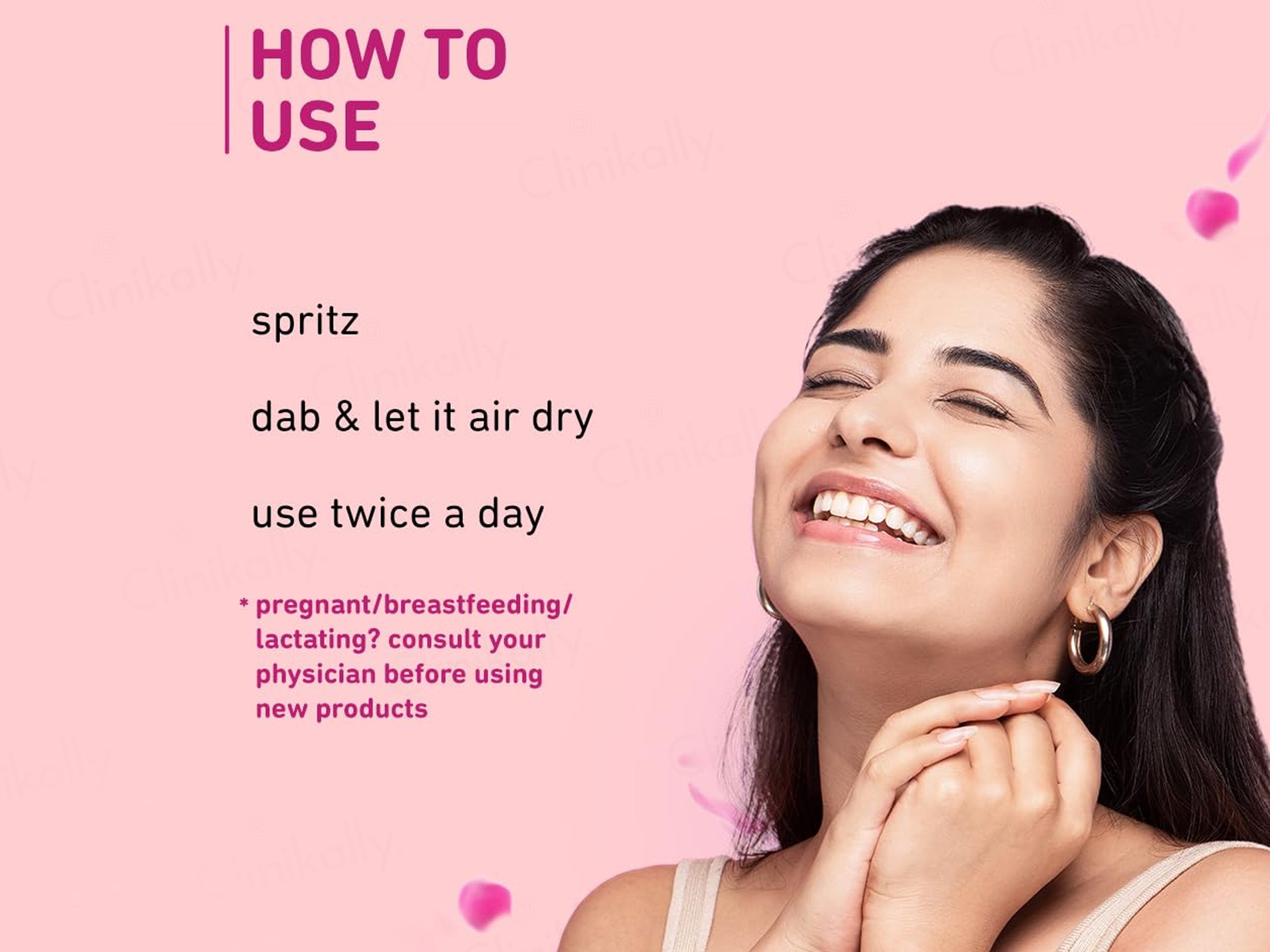Key ingredients include Bulgarian rose extract, hyaluronic acid, and witch hazel.