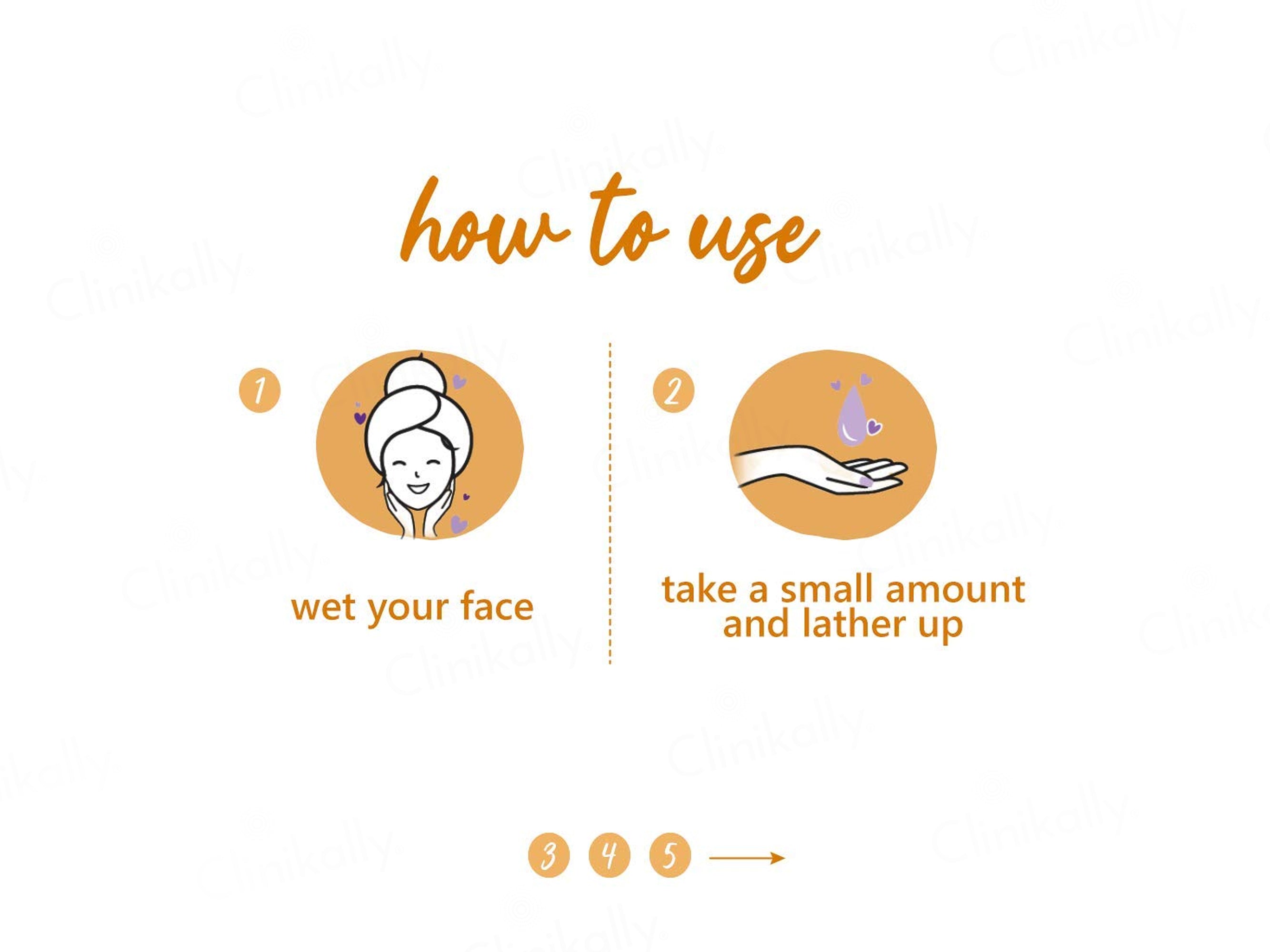 - Lather a small amount and massage onto face