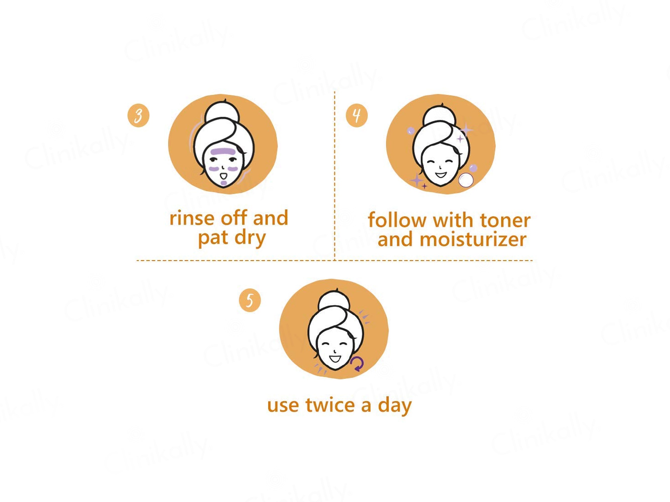 - Rinse off and pat dry, use twice a day