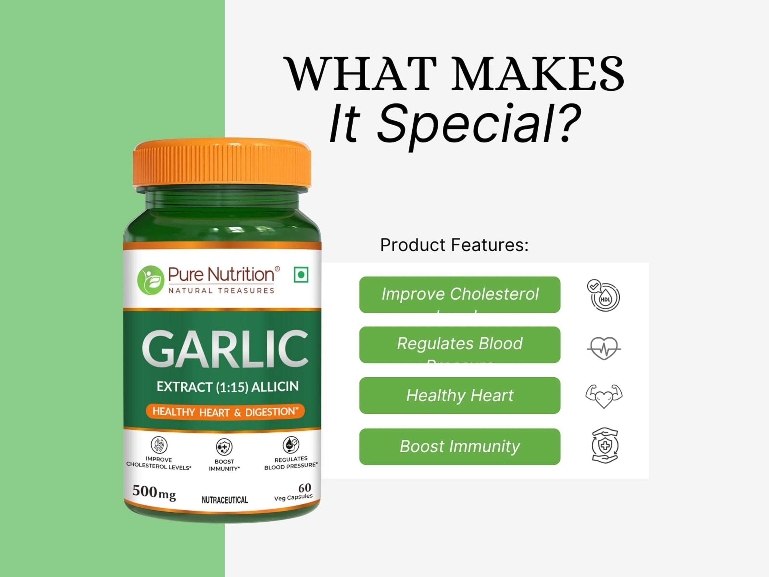 - Take one Pure Nutrition Garlic Extract (1:15) Allicin 500mg Veg Capsule daily after meals or as directed by a healthcare professional.