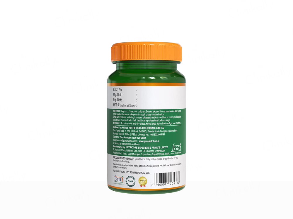 Pure Nutrition Milk Thistle Liver Detox Veg Tablet is a potent herbal blend formulated to support liver health and enhance detoxification. Featuring 80% Silymarin flavonoids from Silybum marianum (Milk Thistle), it protects and regenerates liver cells while flushing toxins. Enriched with N-Acetyl-L-Cysteine (NAC), Curcumin, and Dandelion Extract, it boosts antioxidant defense, reduces inflammation, and improves bile flow. Vegan-friendly and free from artificial additives, this tablet aids digestion, promotes metabolic balance, and combats oxidative stress. Ideal for individuals seeking holistic liver support or recovering from toxin exposure.