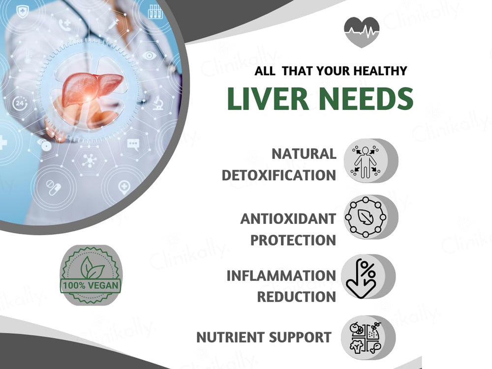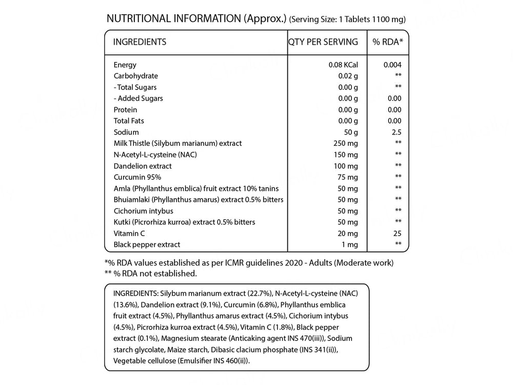 • Enhances liver detoxification and regeneration with 80% Silymarin flavonoids.