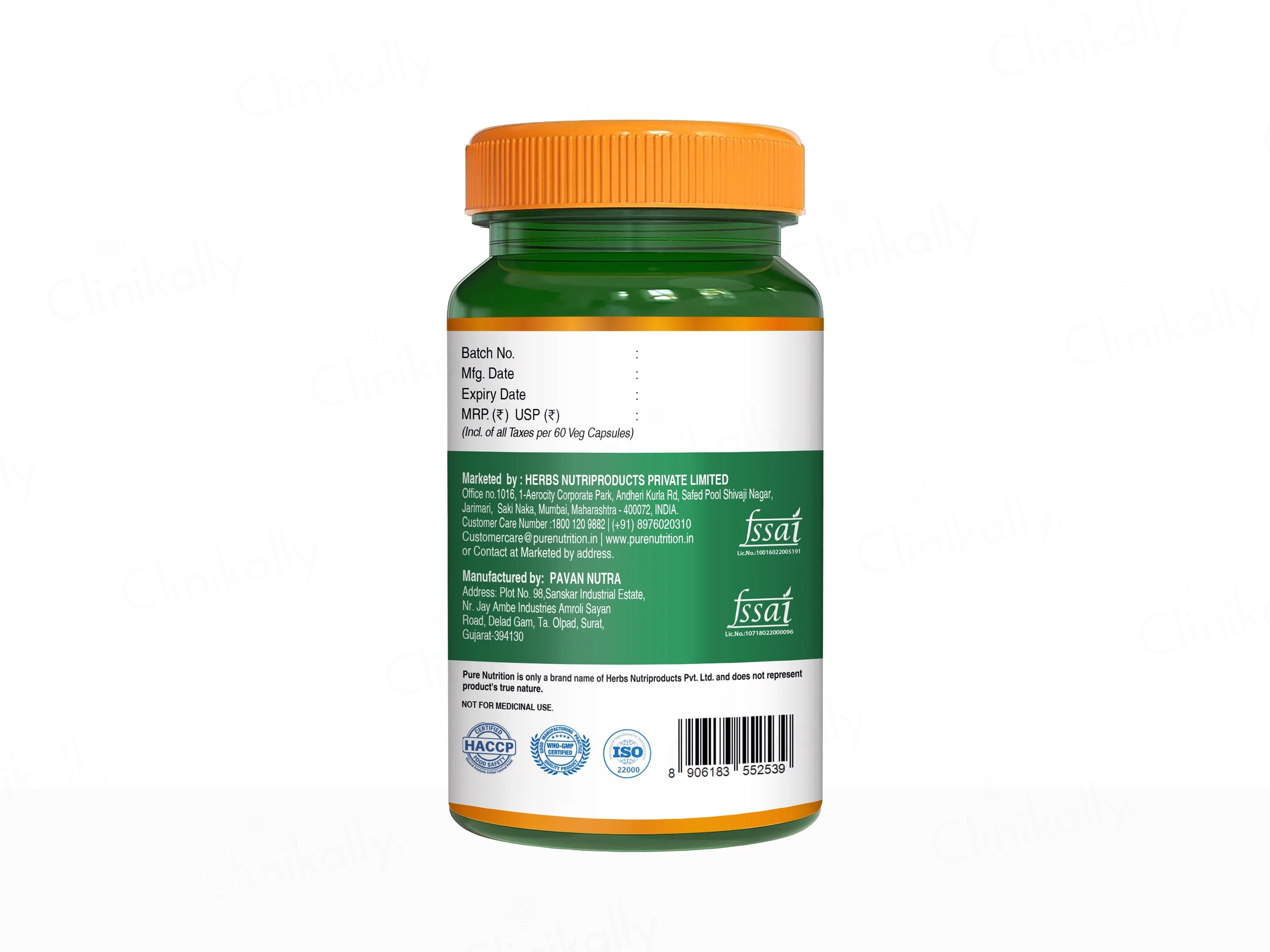 Pure Nutrition Naturally Sourced Astaxanthin 4mg Veg Capsule is a premium antioxidant supplement formulated to support skin, brain, heart, and immune health. Each serving of two capsules provides 4 mg of natural Astaxanthin derived from 160 mg of Haematococcus pluvialis algal biomass, known for its potent antioxidant and anti-inflammatory benefits. It helps protect cells from oxidative stress, promotes healthy and youthful skin, supports cardiovascular function, enhances brain performance, and strengthens immunity. Ideal for individuals seeking overall wellness and protection against free radicals, this supplement is a powerful addition to daily health routines for vibrant skin and optimal internal balance.