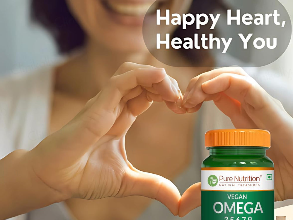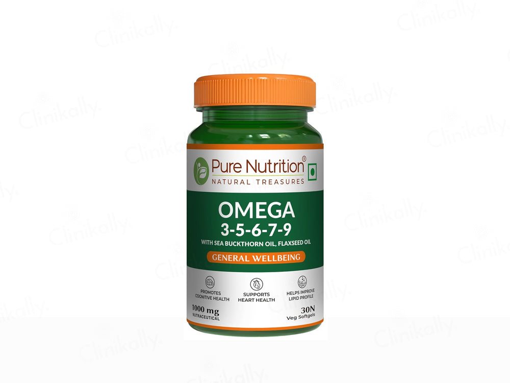 Pure Nutrition Vegan Omega 3-5-6-7-9 Veg Softgel is a comprehensive plant-based blend of essential fatty acids for heart, skin, and joint health. Combining Flaxseed Oil (Omega-3), Borage Oil (Omega-6), Sea Buckthorn Oil (Omega-7), Olive Oil (Omega-9), and Pomegranate Seed Oil (Omega-5), it supports anti-inflammatory responses, hydration, and cognitive function. Encapsulated in vegan softgels with natural vanilla flavor, this formula is free from artificial additives. Ideal for vegans and vegetarians, it bridges nutritional gaps and promotes holistic wellness with nature-derived omegas.