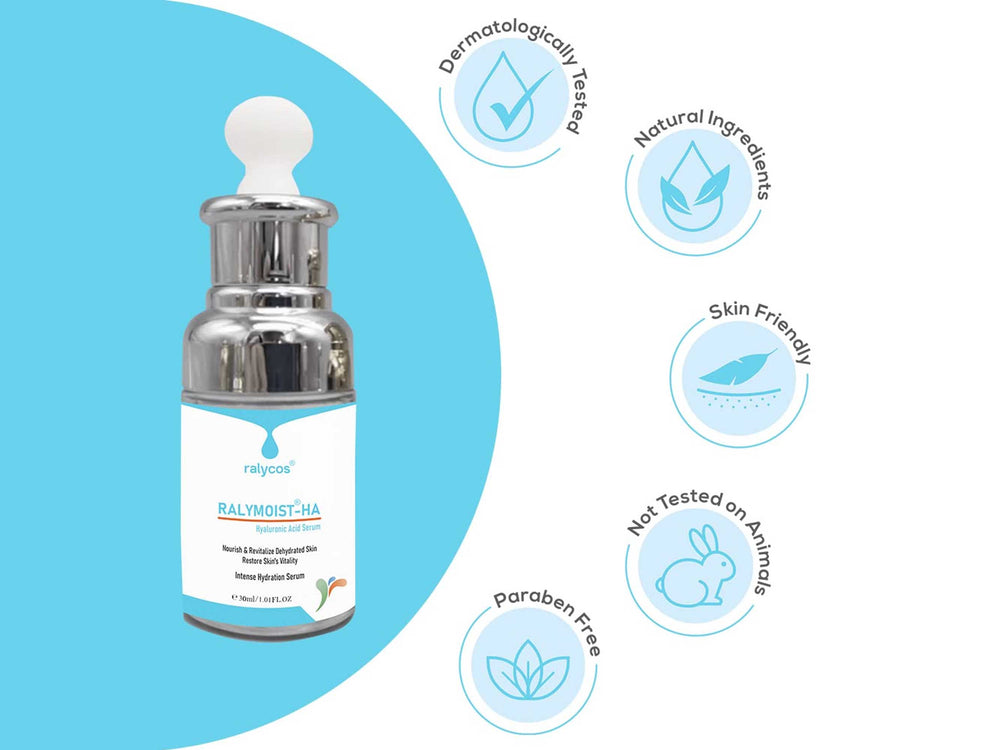 - Apply a few drops of Ralymoist-HA Hyaluronic Acid Serum to clean, dry skin.