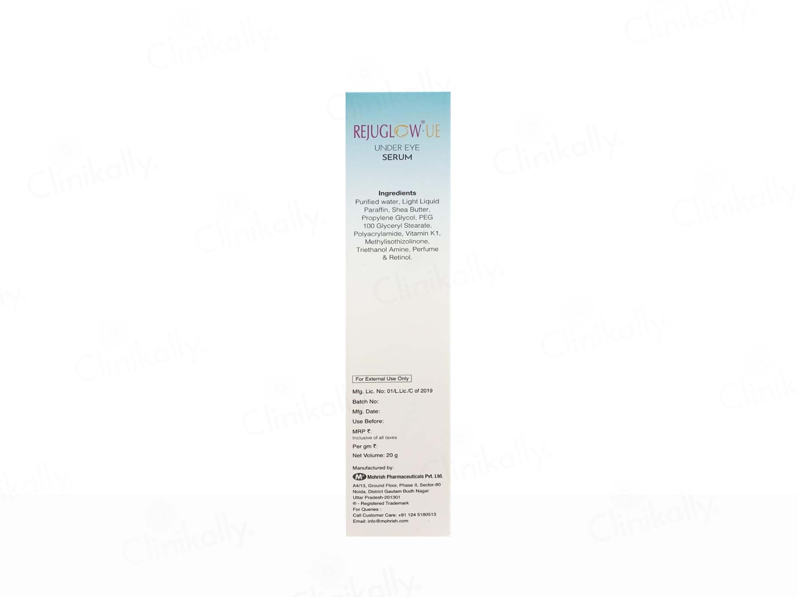 Rejuglow-UE Under Eye Serum is a targeted dark circle reduction formula powered by Vitamin K1 and retinol to visibly brighten the under-eye area. This lightweight eye serum helps fade blue and brown dark circles, smooth fine lines and crow’s feet, and reduce puffiness for a fresher, wide-awake look. Nourishing shea butter and light liquid paraffin keep the delicate eye contour soft and hydrated without feeling greasy. Paraben-free, non-comedogenic and dermatologically tested, Rejuglow-UE Under Eye Serum is ideal for daily anti-ageing, dark circle and puffiness care.