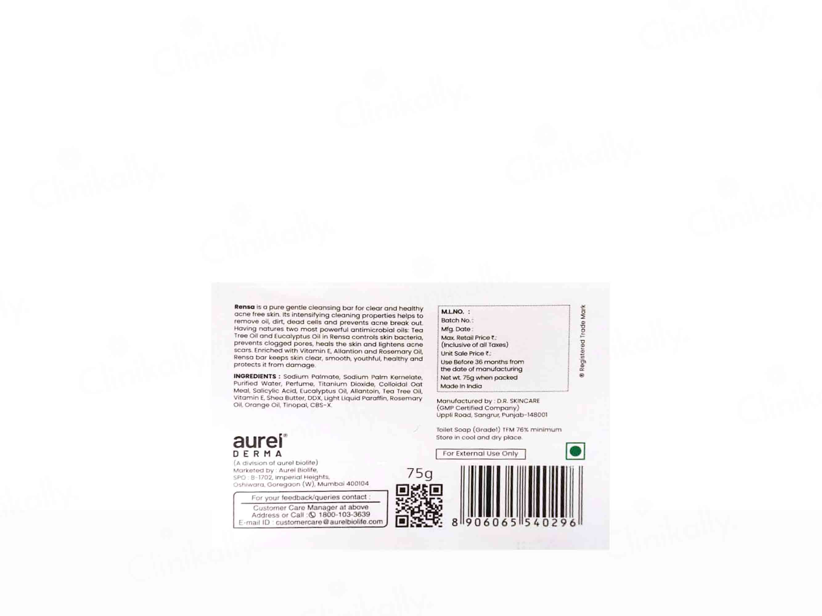 Rensa Anti-Acne Cleansing Bar is a gentle cleansing bar specially formulated for acne-prone skin. It deeply cleanses oil, dirt, and dead skin cells while preventing acne breakouts. Infused with potent antimicrobial agents like Tea Tree Oil and Eucalyptus Oil, it controls acne-causing bacteria and helps unclog pores. With soothing actives such as Colloidal Oatmeal, Allantoin, and Vitamin E, it heals and nourishes the skin while lightening acne scars. Regular use keeps skin clear, healthy, and protected without over-drying.