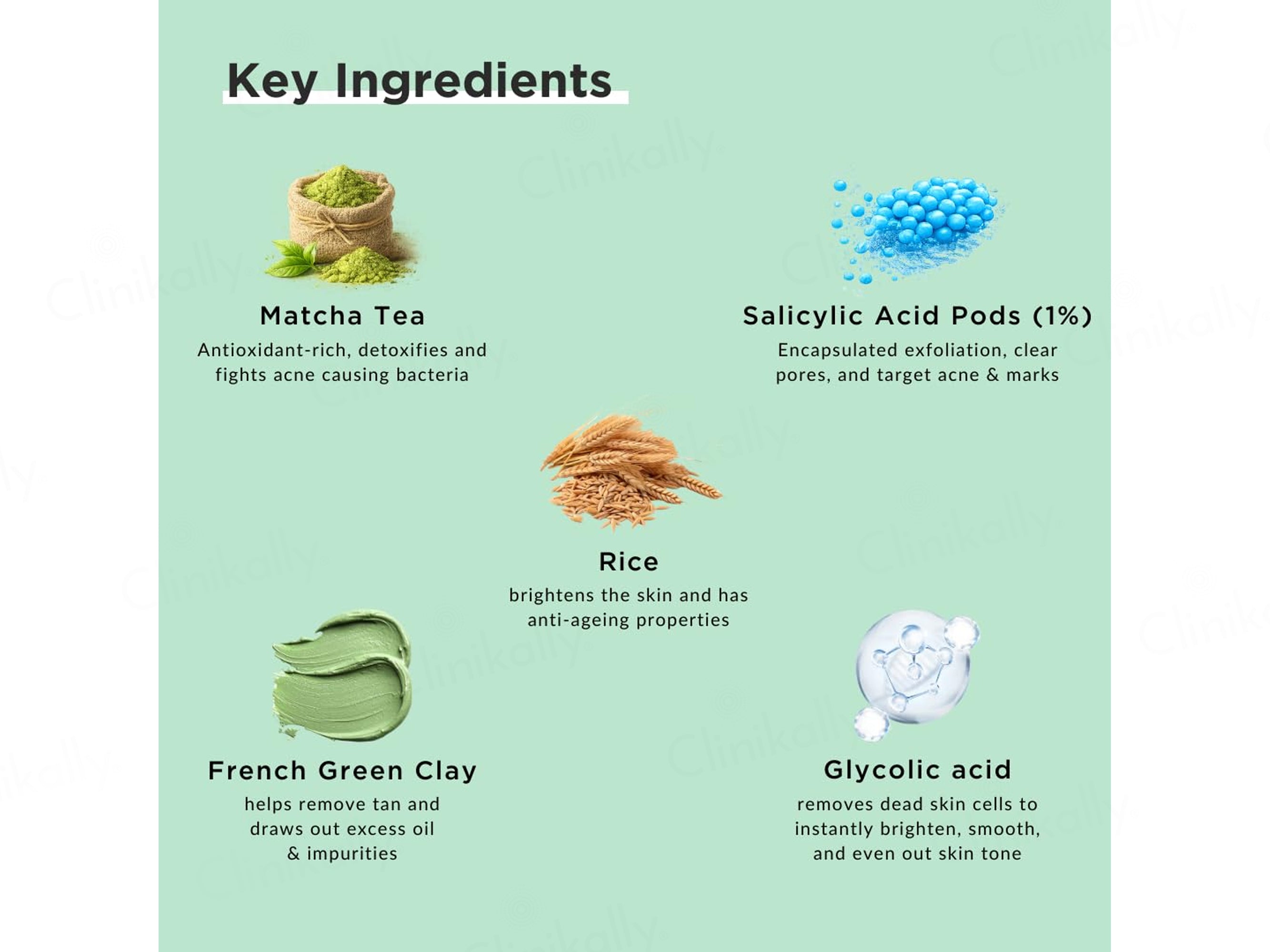 - Clean your face with Ricekraft facewash, then spread a generous amount of Ricekraft Matcha & Salicylic Pods D-Tan & Acne Care Clay Face Mask evenly and leave for 10-15 minutes to dry.
