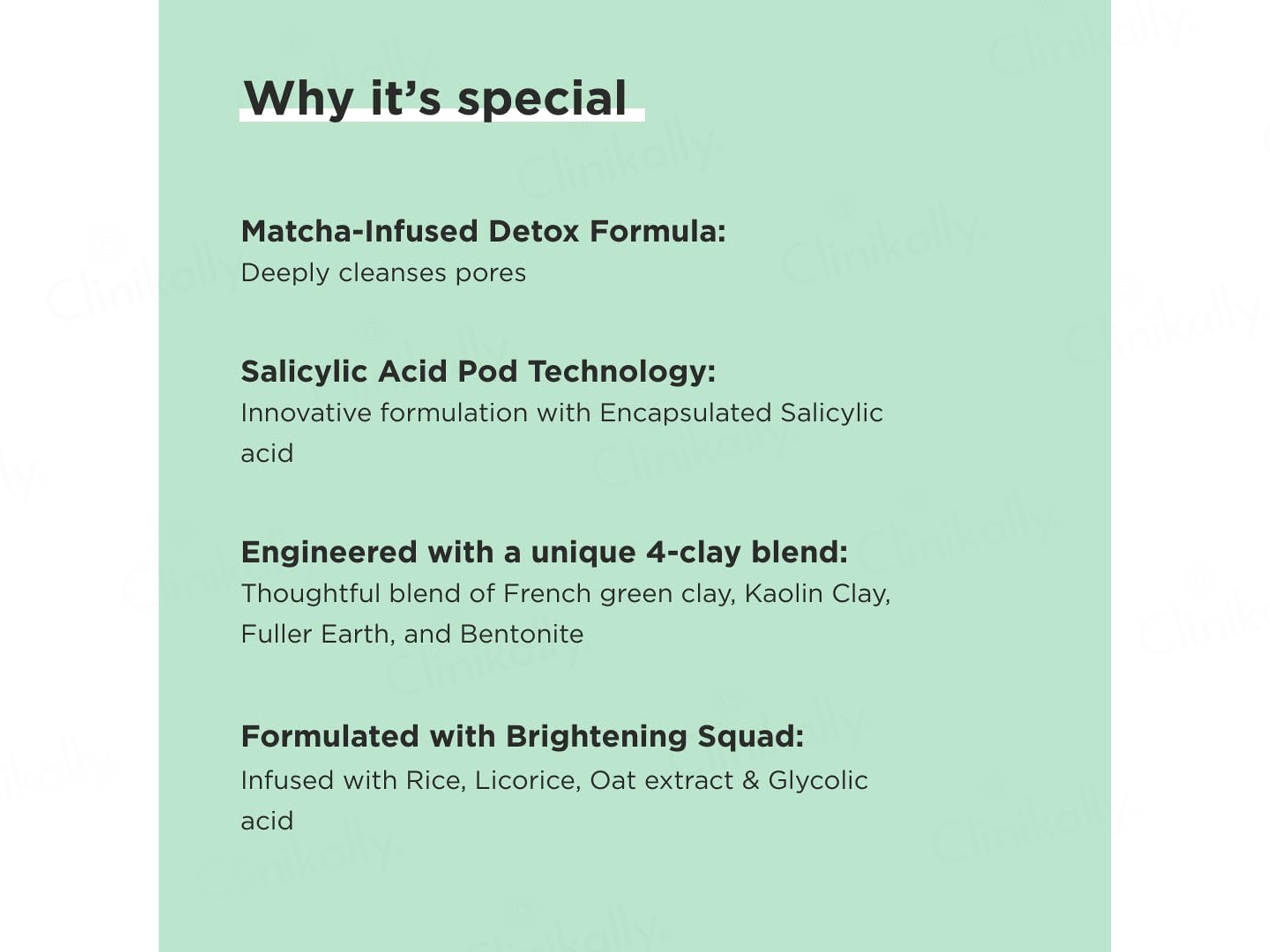 - Cleanses deeply with Kaolin and French Green Clay.