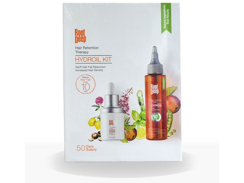 The Root Deep Hair Retention Therapy Hydroil Kit is an advanced hair care system designed to promote hair retention and encourage new growth.