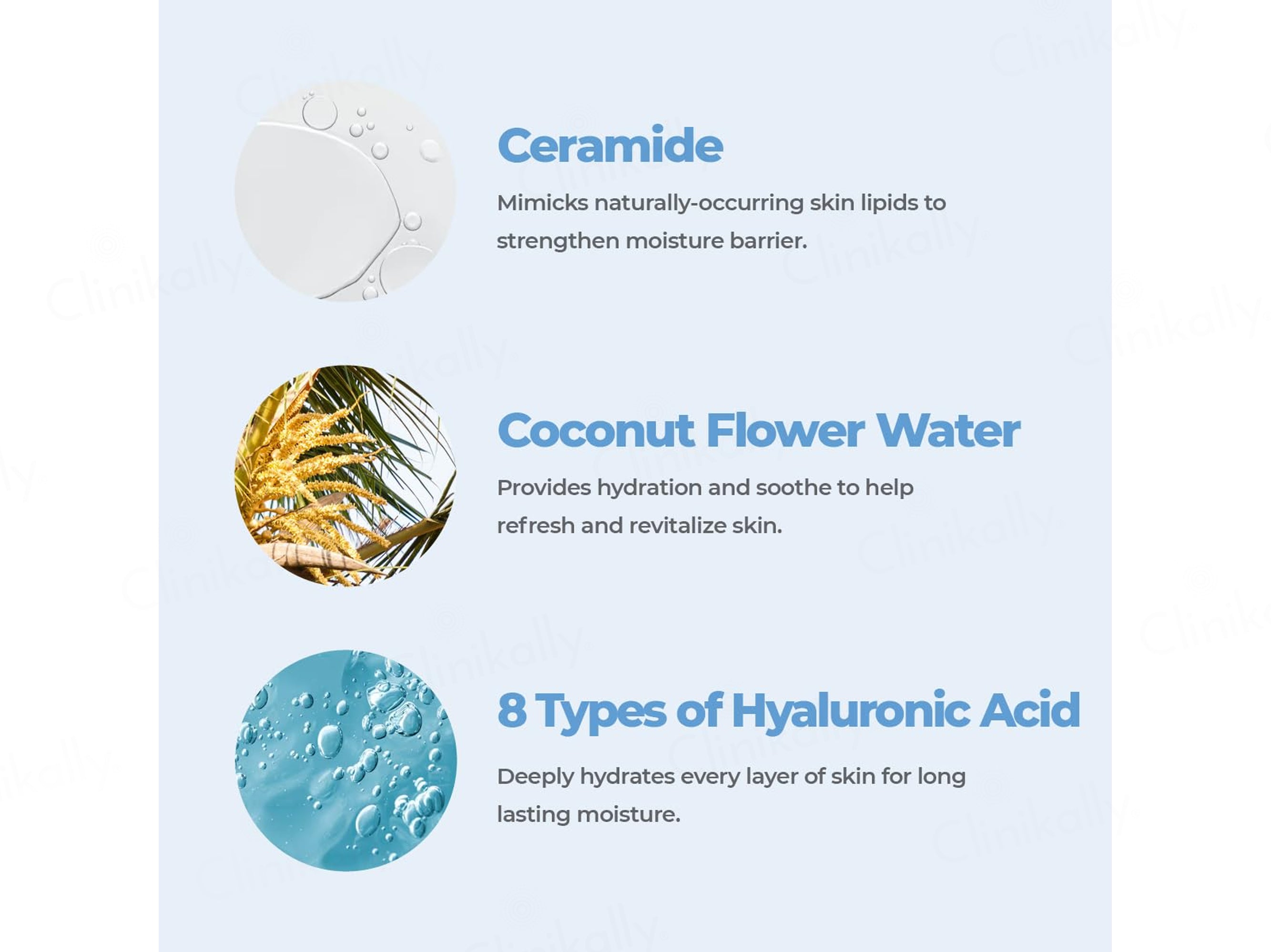 Rovectin Aqua Hyaluronic Soothing Cream (Aqua Concentrate) is a lightweight, oil-free moisturizer that features a triple shield to seal in moisture from the innermost to the outermost layers of the skin for prolonged hydration, containing eight different types of hyaluronic acids that deeply hydrate every layer while ceramide strengthens the moisture barrier to protect against dehydration. Enriched with soothing botanicals, it calms redness and irritation, making it ideal for sensitive, oily, or combination skin types, and delivers antioxidant benefits for brighter, smoother complexion without stickiness. Key ingredients such as hyaluronic acid, sodium hyaluronate, hydrolyzed hyaluronic acid, ceramide NP, niacinamide, panthenol, Hydrangea Macrophylla Leaf Extract, Althaea Rosea Flower Extract, Agave Tequilana Leaf Extract, Lactobacillus Ferment, Chlorella Vulgaris Extract, phytosterols, beta-glucan, and ectoin provide intense hydration, barrier repair, and calming effects for refreshed, revitalized skin.