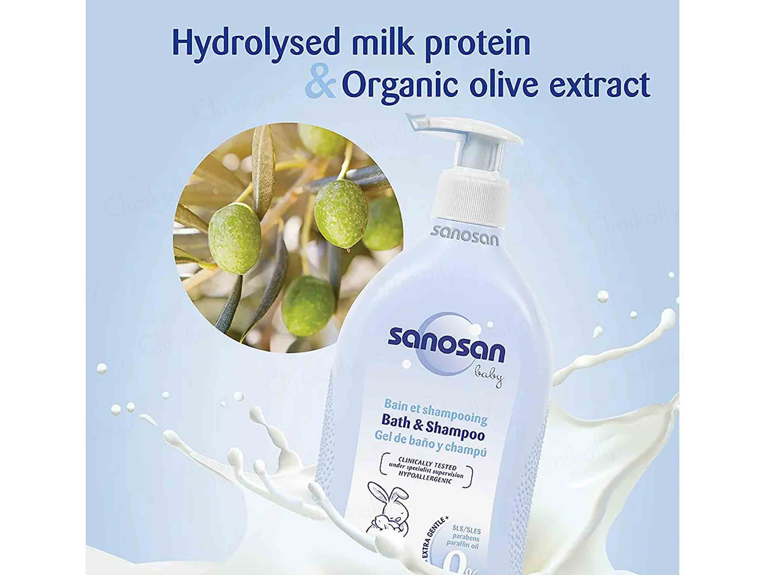 Sanosan Baby Milk Protein Bath & Shampoo has a mild and pleasant fragrance, suitable for babies.