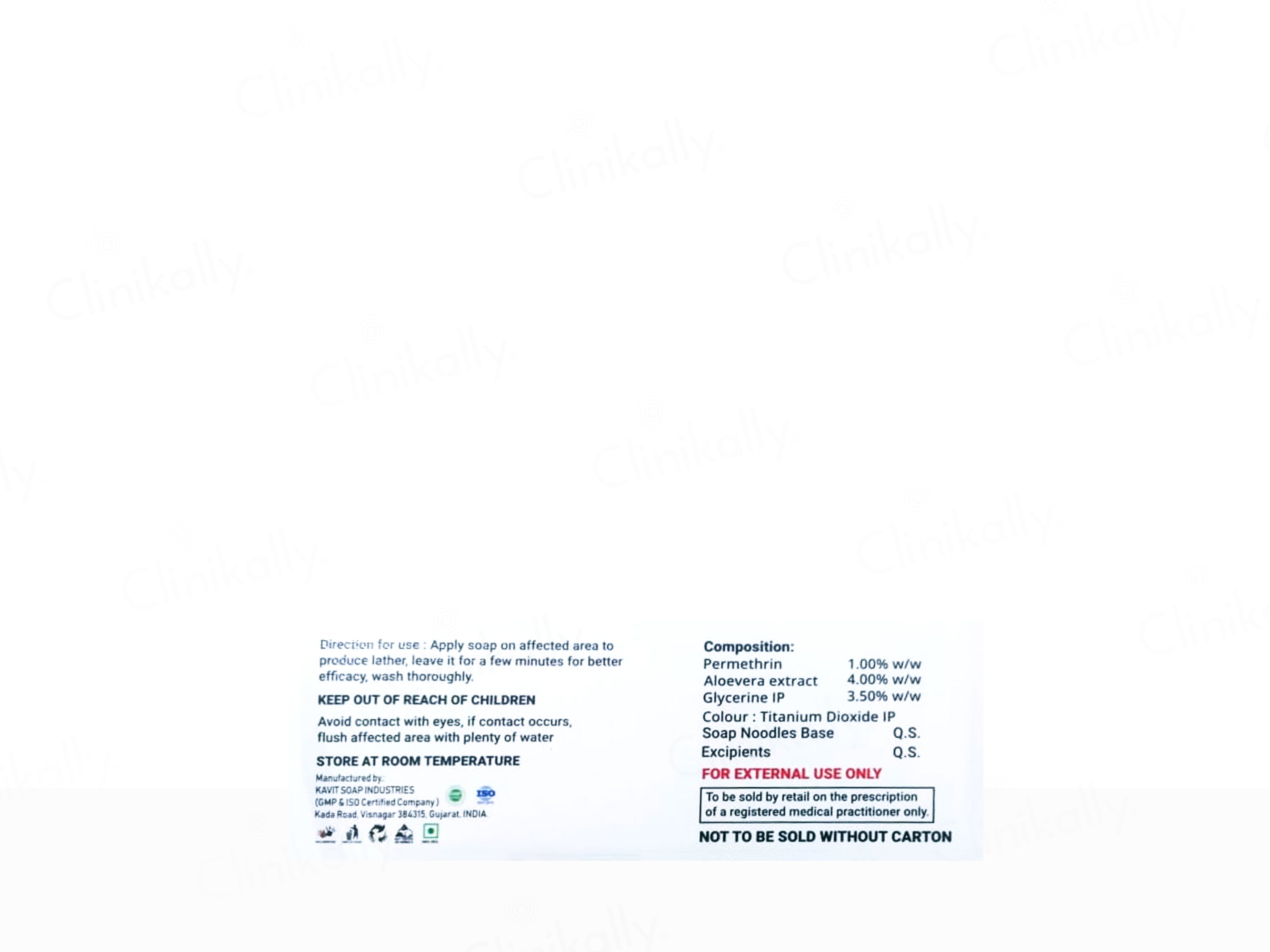 Scabez-X Soap is a medicated cleansing bar formulated with 1% Permethrin, specifically designed to help in the management of scabies and related parasitic skin infestations. Permethrin, a synthetic pyrethroid, works by paralyzing and killing mites and their eggs, thereby relieving symptoms such as itching, redness, and irritation caused by scabies. The soap not only helps in eradicating the mites but also ensures daily cleansing of the skin, making it an effective supportive hygiene measure during scabies treatment. Scabez-X Soap is recommended for external use only and should be used as directed by a healthcare professional for best results.