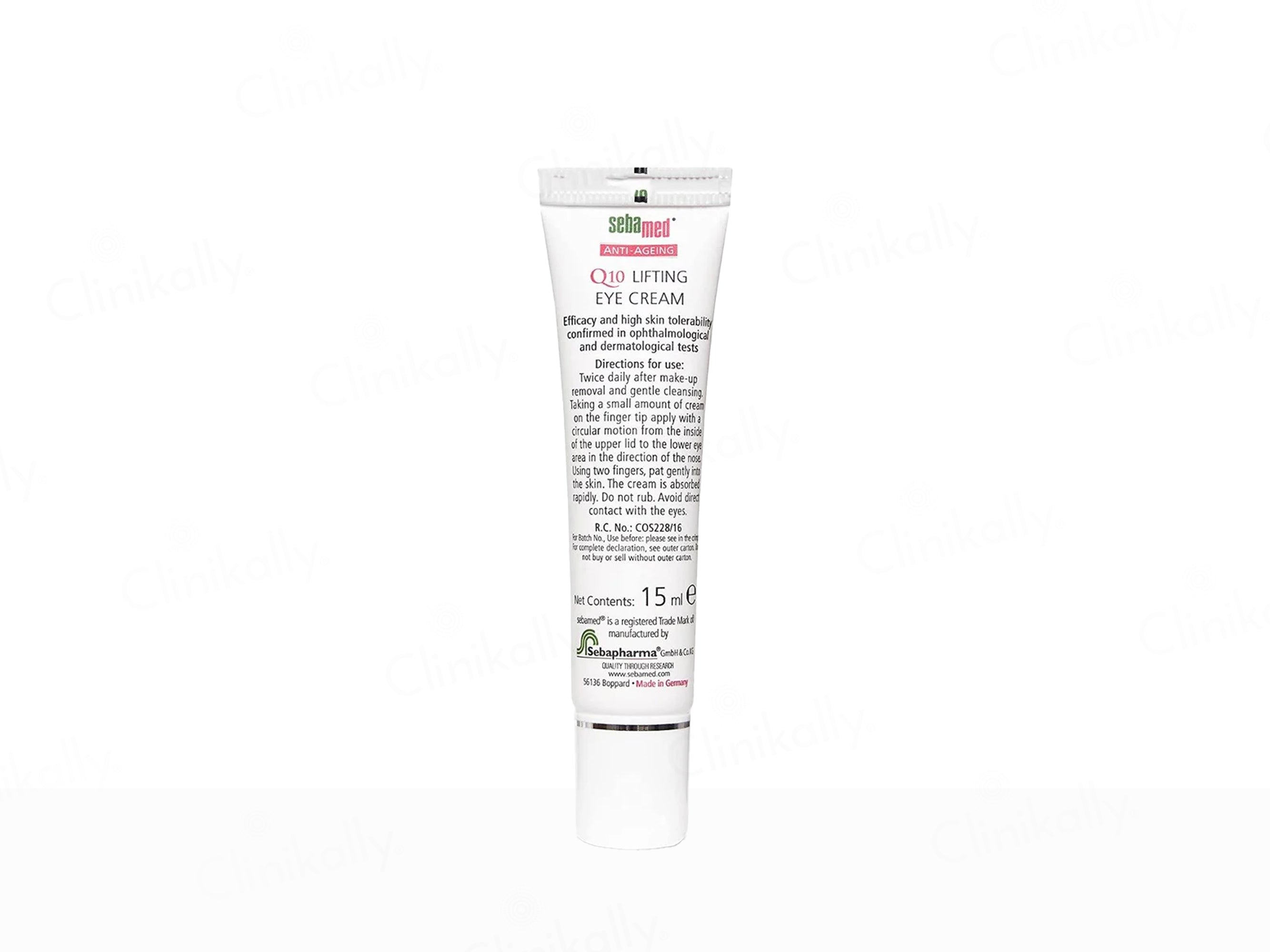 Sebamed Anti-Aging Lifting Eye Cream is a pH-balanced, dermatologically tested formula designed to visibly reduce wrinkles within 28 days by nourishing and strengthening the delicate eye area, powered by moisturizing phytopeptides and a blend of skin-revitalizing actives including Glycerin, Prunus Amygdalus Dulcis (Sweet Almond) Oil, Persea Gratissima (Avocado) Oil, Polyglyceryl-2 Dipolyhydroxystearate, Butyrospermum Parkii (Shea) Butter, Palmitoyl Tripeptide-1, Palmitoyl Tetrapeptide-7, Ubiquinone (CoQ10), Sodium Hyaluronate, Bisabolol, Sodium Lactate, Coco-Glucoside, Butylene Glycol, Cetearyl Alcohol, and C12-15 Alkyl Benzoate to hydrate, smooth, and protect while improving firmness, elasticity, and overall eye-area radiance.