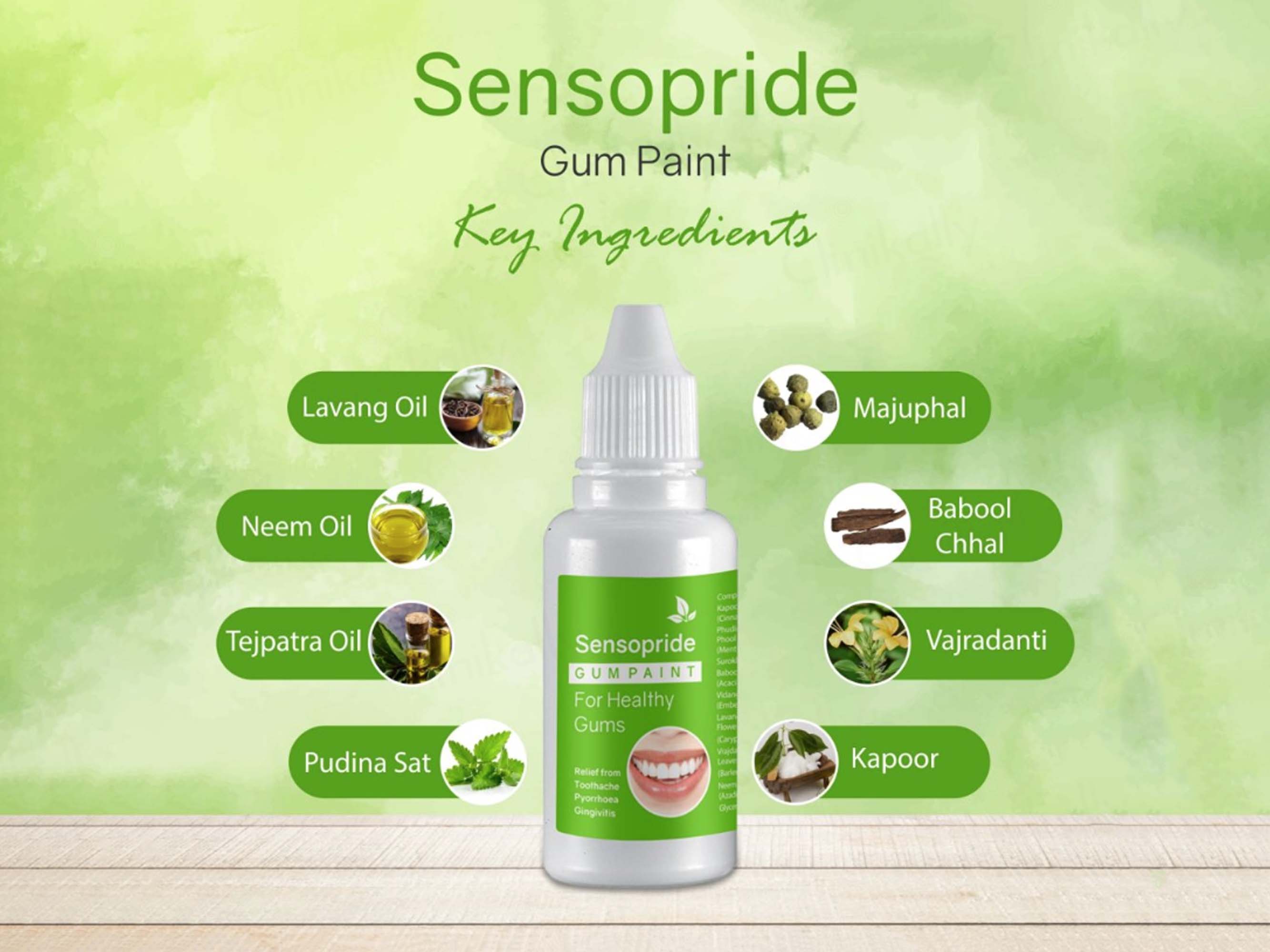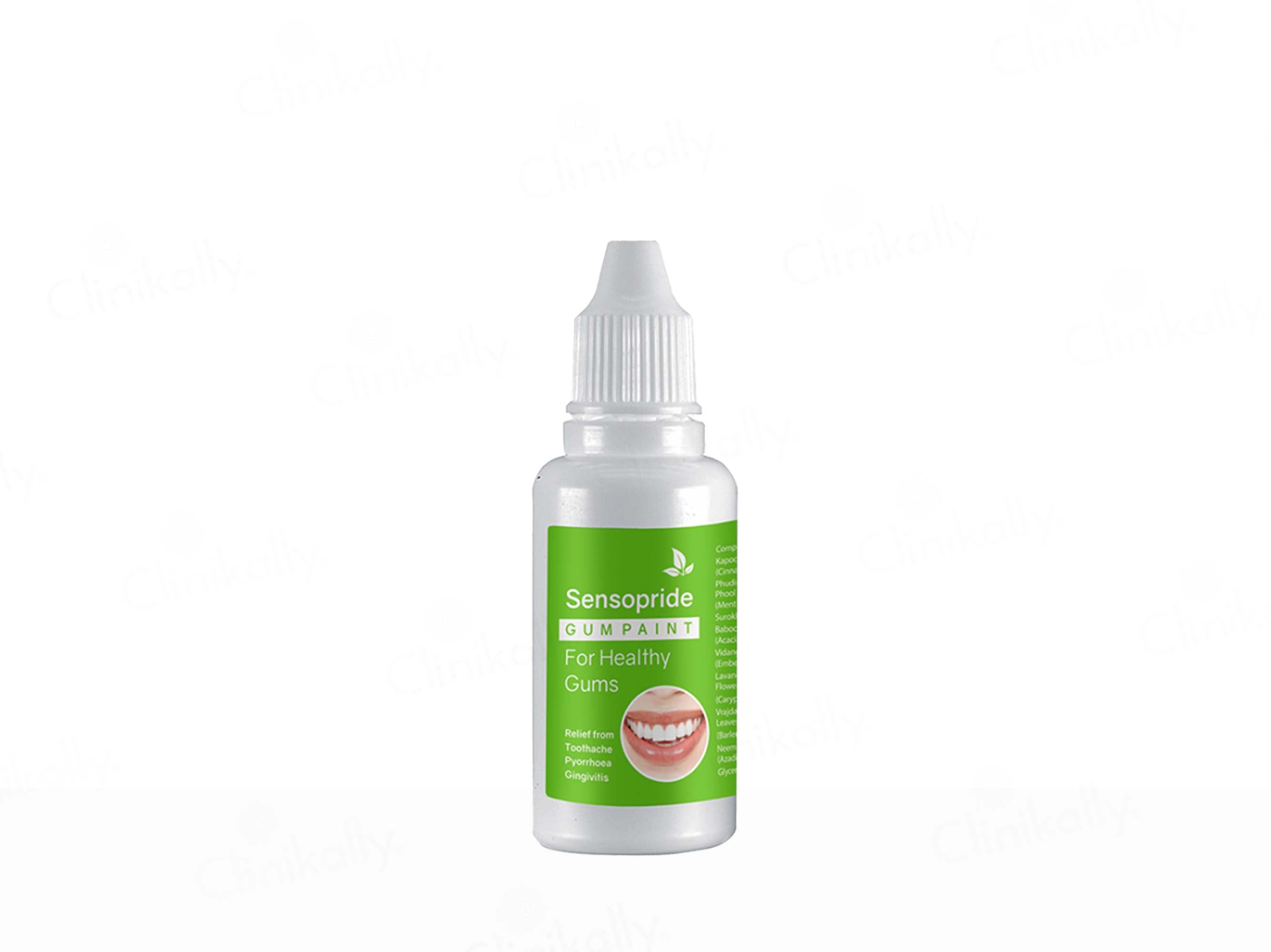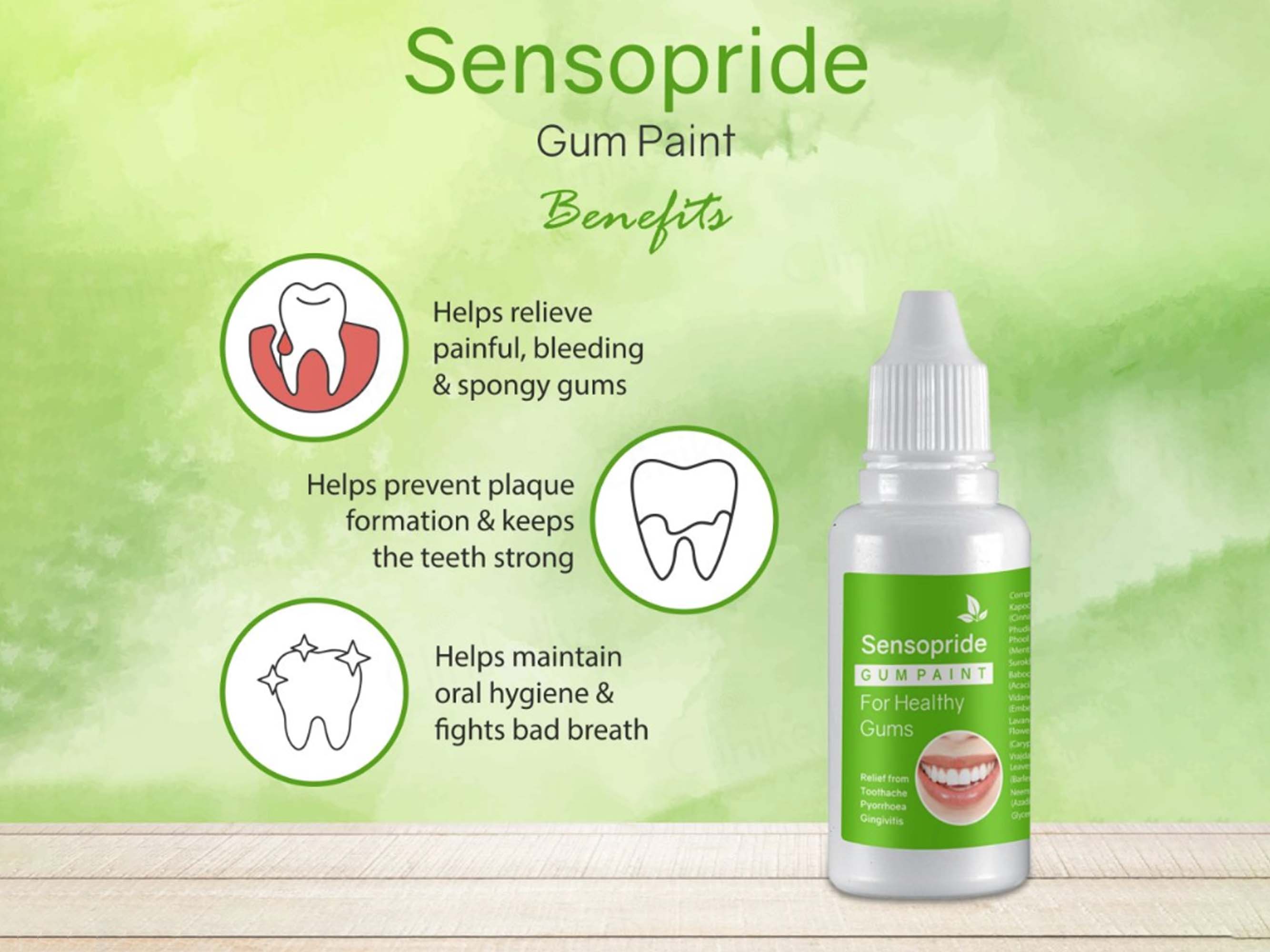 Sensopride Gum Paint is a dental care product designed to promote healthy gums and provide relief from toothache, pyorrhoea, and gingivitis with an Ayurvedic proprietary formula for all users. Enriched with natural ingredients like Kapoor Crystal, Pudina Ka Phool, Babool Chhal Extract, Vidang Seeds Extract, and Lavang Flowerbud Aromatics, it tightens gums, arrests bleeding, inhibits salivary bacteria growth, and prevents cavities while offering long-lasting fresh breath. The herbal formulation is ideal for daily use, delivering visible results with consistent application as directed.