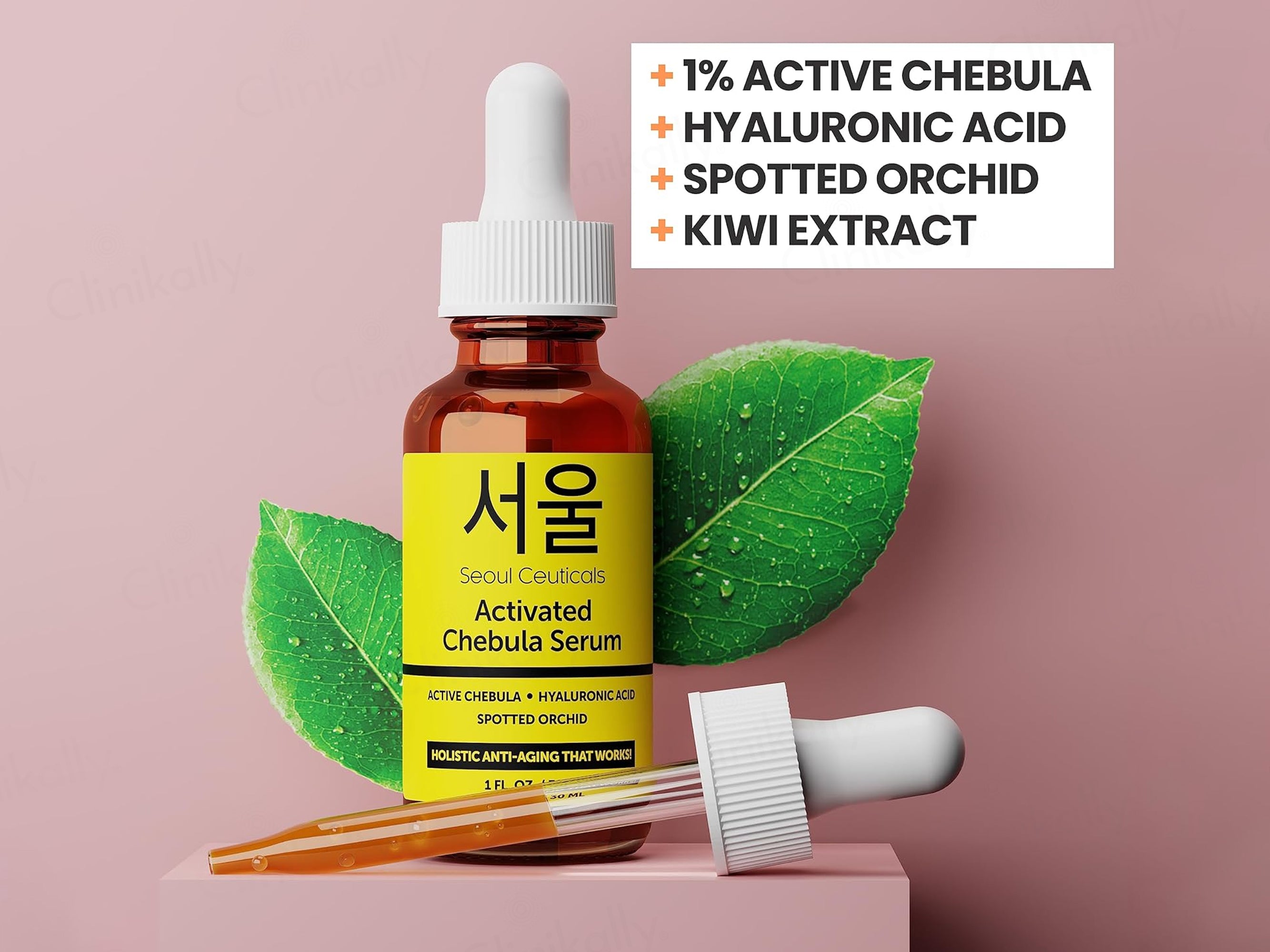 SeoulCeuticals Activated Chebula Face Serum is a premium Korean skincare formula crafted to rejuvenate, hydrate, and smoothen the skin for a youthful, radiant appearance. Infused with 1% Active Chebula, Hyaluronic Acid, Spotted Orchid, and Kiwi Extract, this 98% natural, cruelty-free serum deeply nourishes and strengthens the skin barrier while delivering visible anti-aging benefits. The unique blend of antioxidants and botanical extracts helps reduce fine lines, enhance suppleness, and restore hydration for a plump, glowing complexion. Its lightweight, fast-absorbing texture makes it suitable for all skin types seeking holistic anti-aging care.